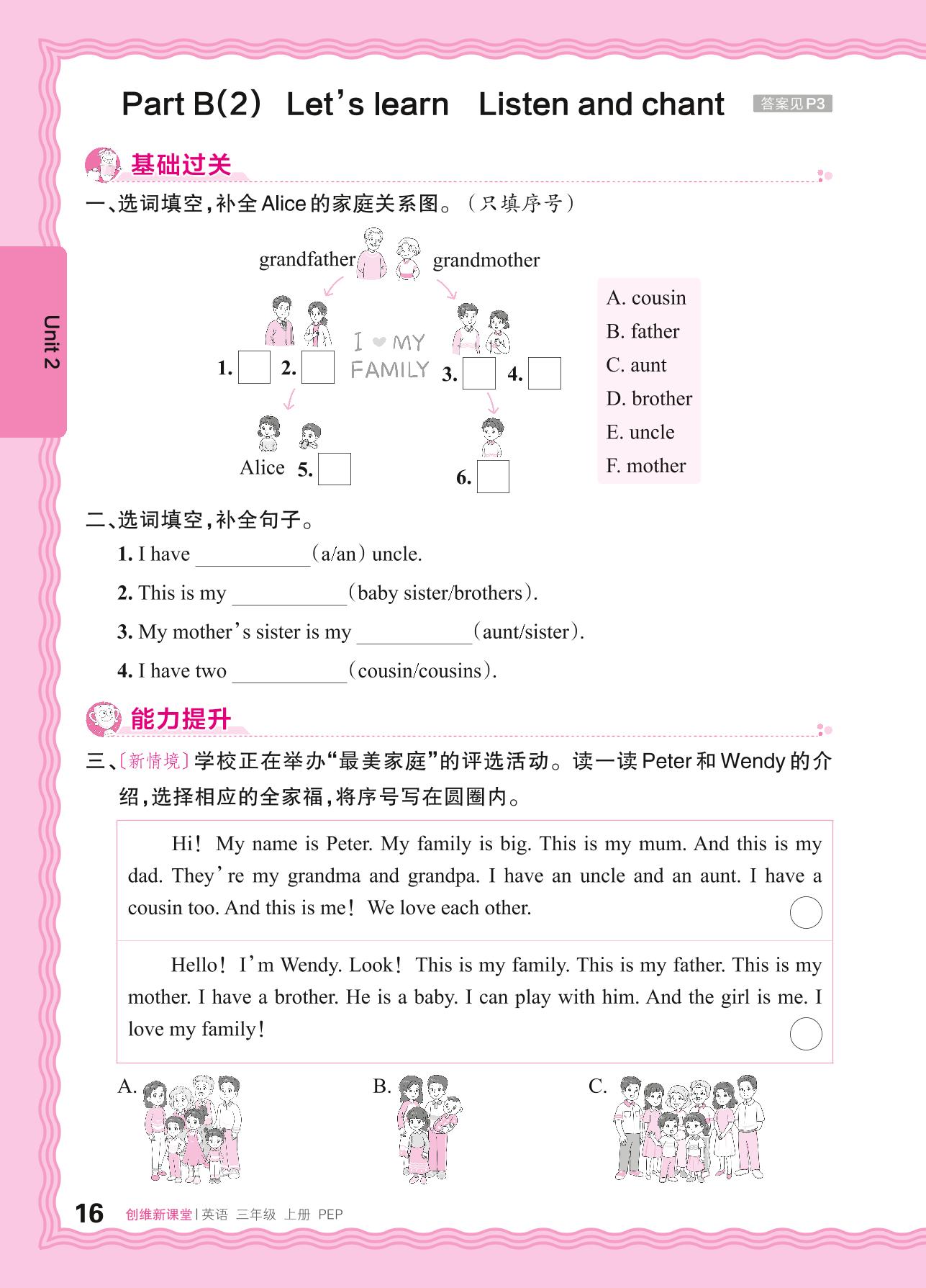 2024秋上册三年级英语人教PEP版(三起始) Unit 2—Part B(2) Let's learn Listen and chant