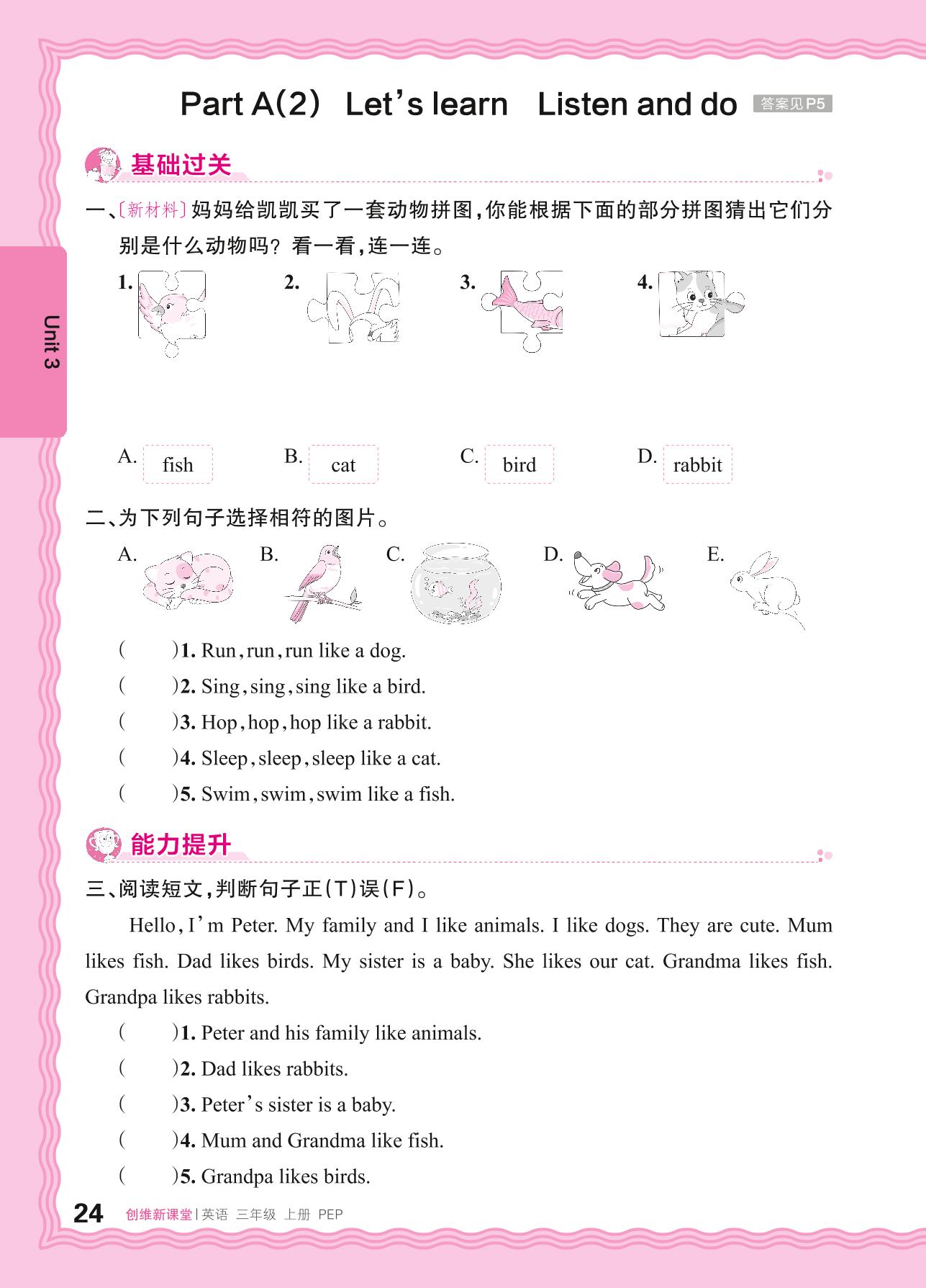 2024秋上册三年级英语人教PEP版(三起始) Unit 3—Part A(2) Let's learn Listen and do