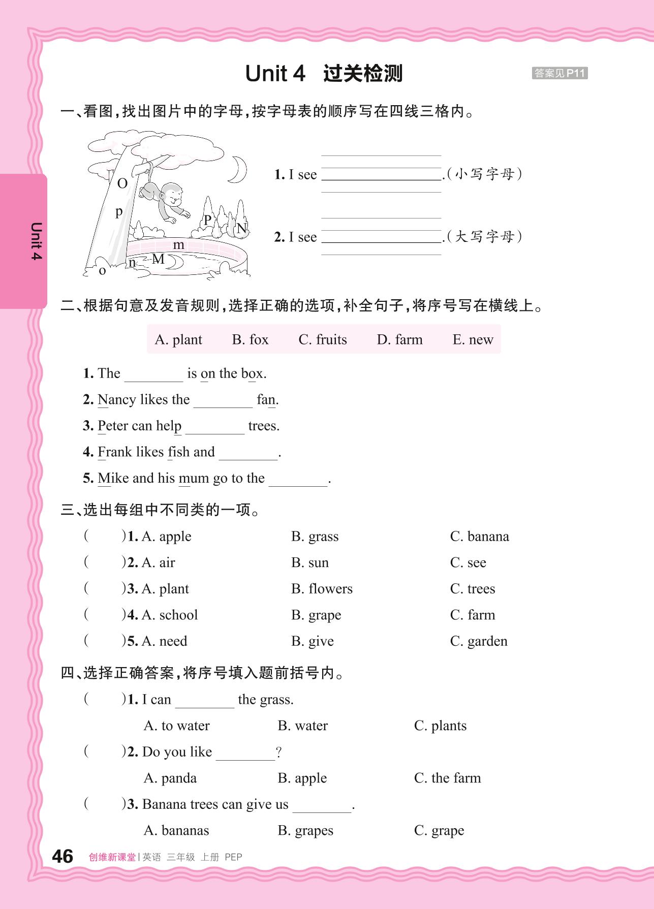 2024秋上册三年级英语人教PEP版(三起始) Unit 4 过关检测