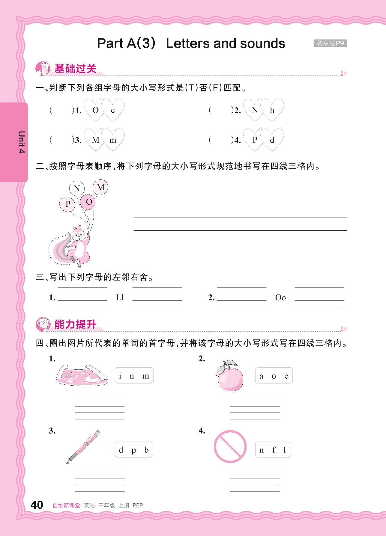 2024秋上册三年级英语人教PEP版(三起始) Unit 4—Part A(3) Letters and sounds