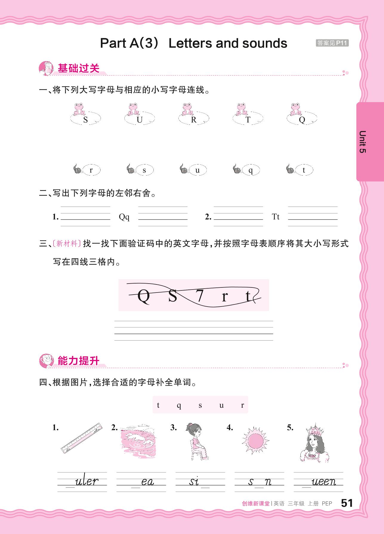 2024秋上册三年级英语人教PEP版(三起始) Unit 5—Part A(3) Letters and sounds