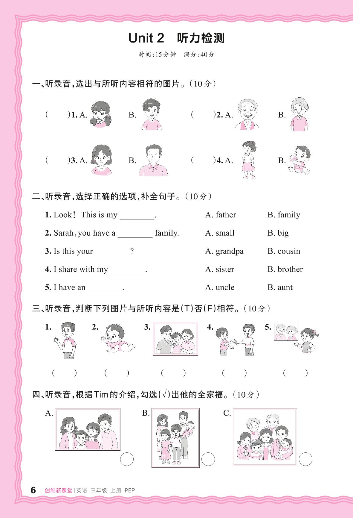 2024秋上册三年级英语人教PEP版(三起始) Unit 2 听力检测