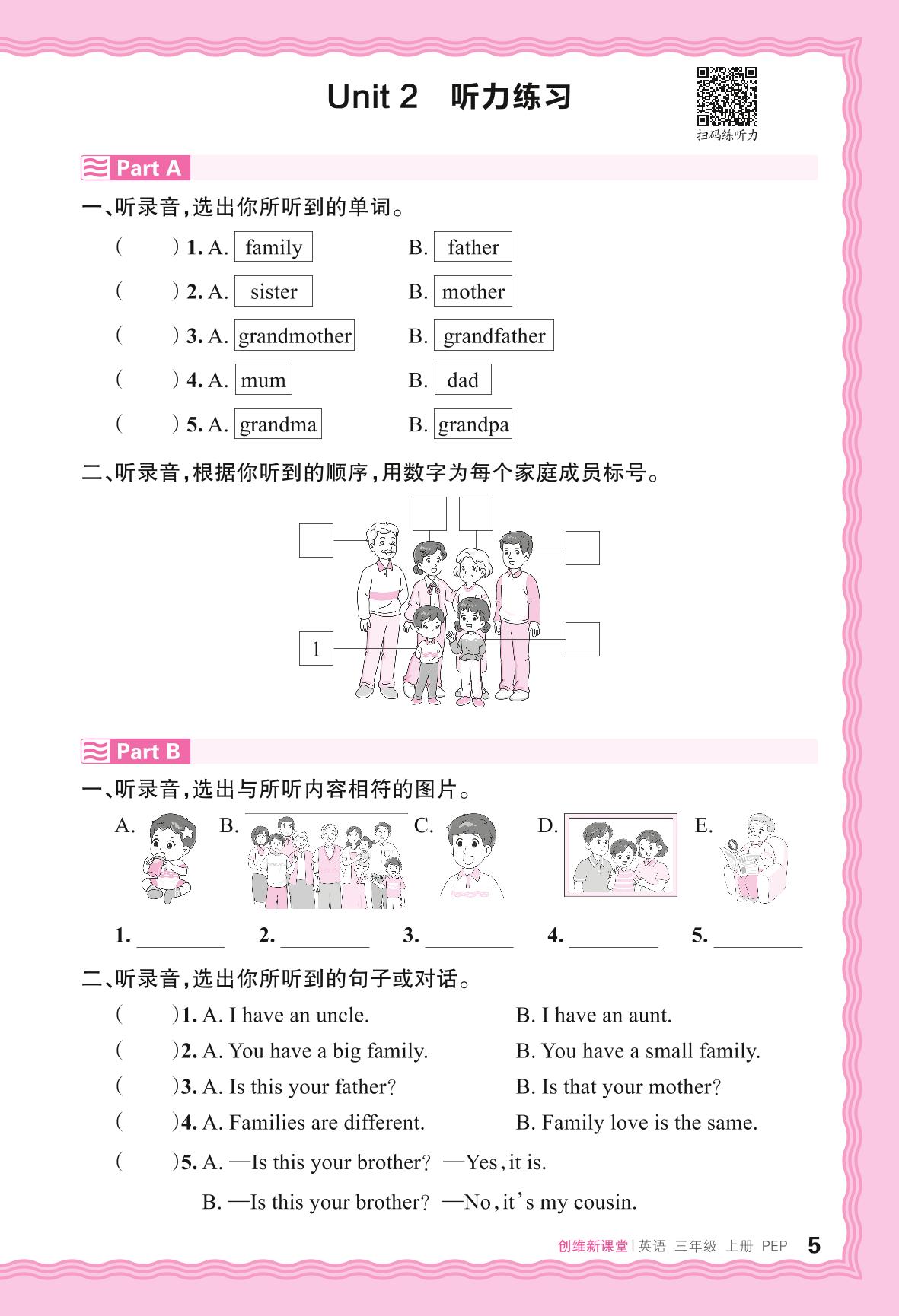 2024秋上册三年级英语人教PEP版(三起始) Unit 2 听力练习