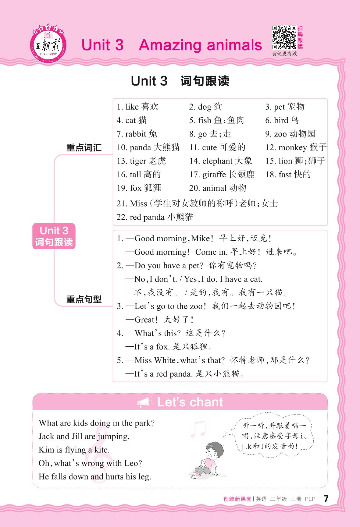 2024秋上册三年级英语人教PEP版(三起始) Unit 3 词句跟读