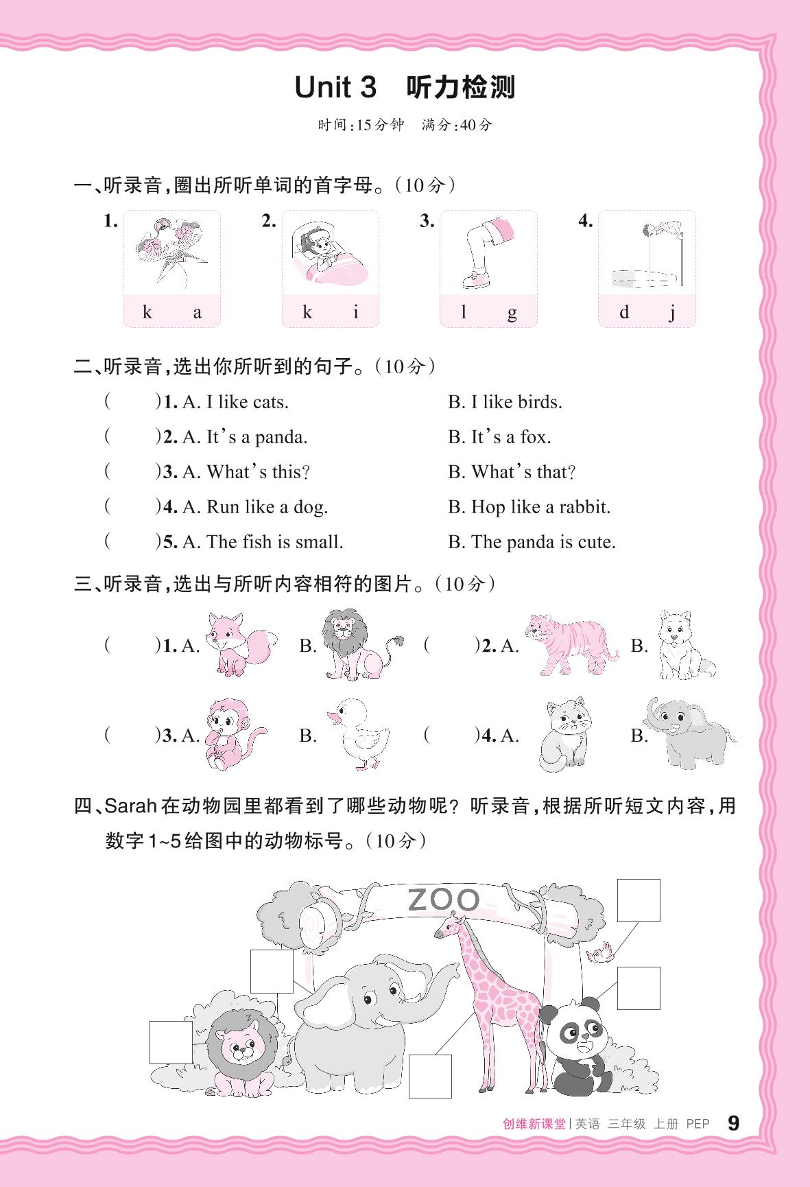2024秋上册三年级英语人教PEP版(三起始) Unit 3 听力检测