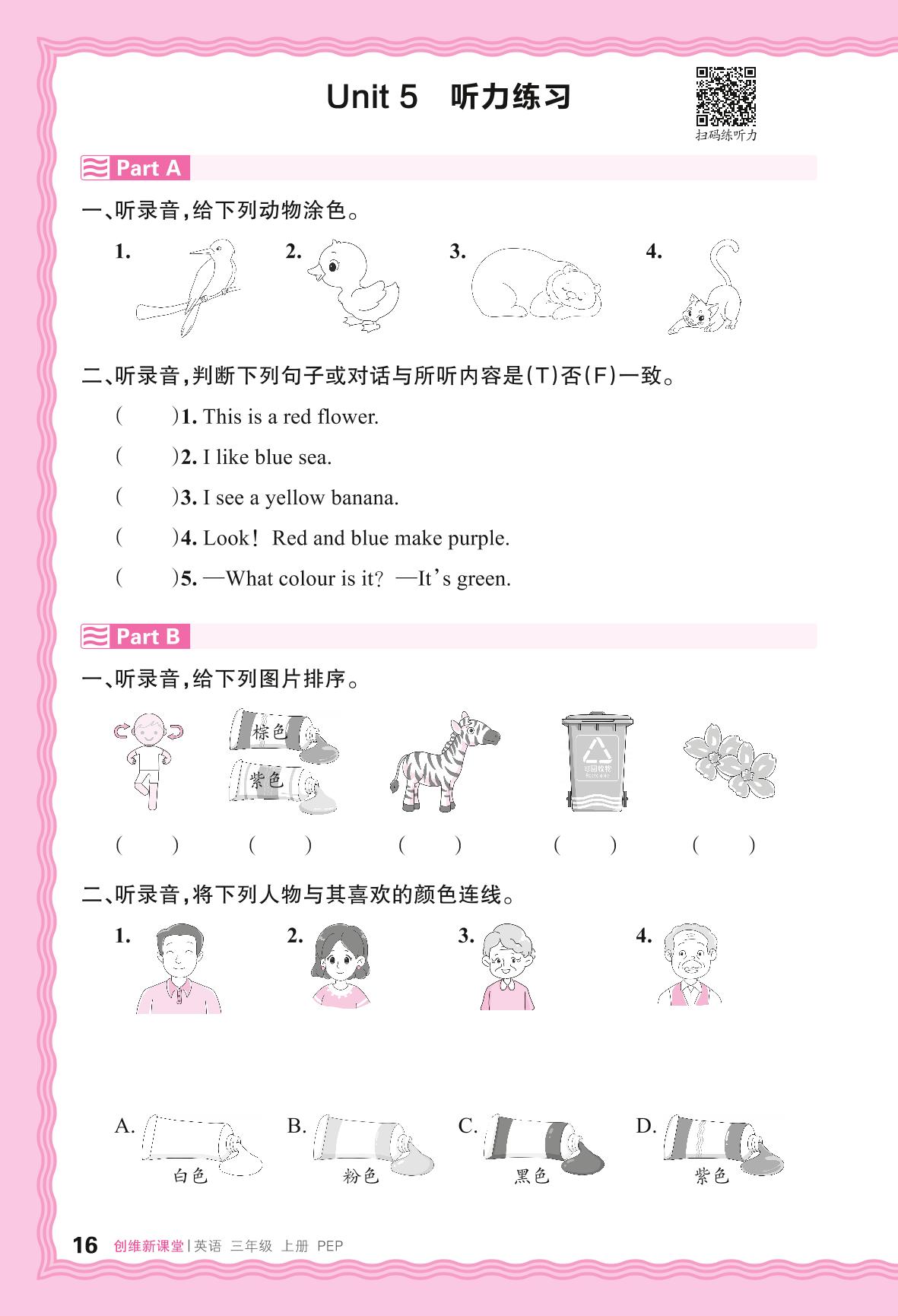 2024秋上册三年级英语人教PEP版(三起始) Unit 5 听力练习