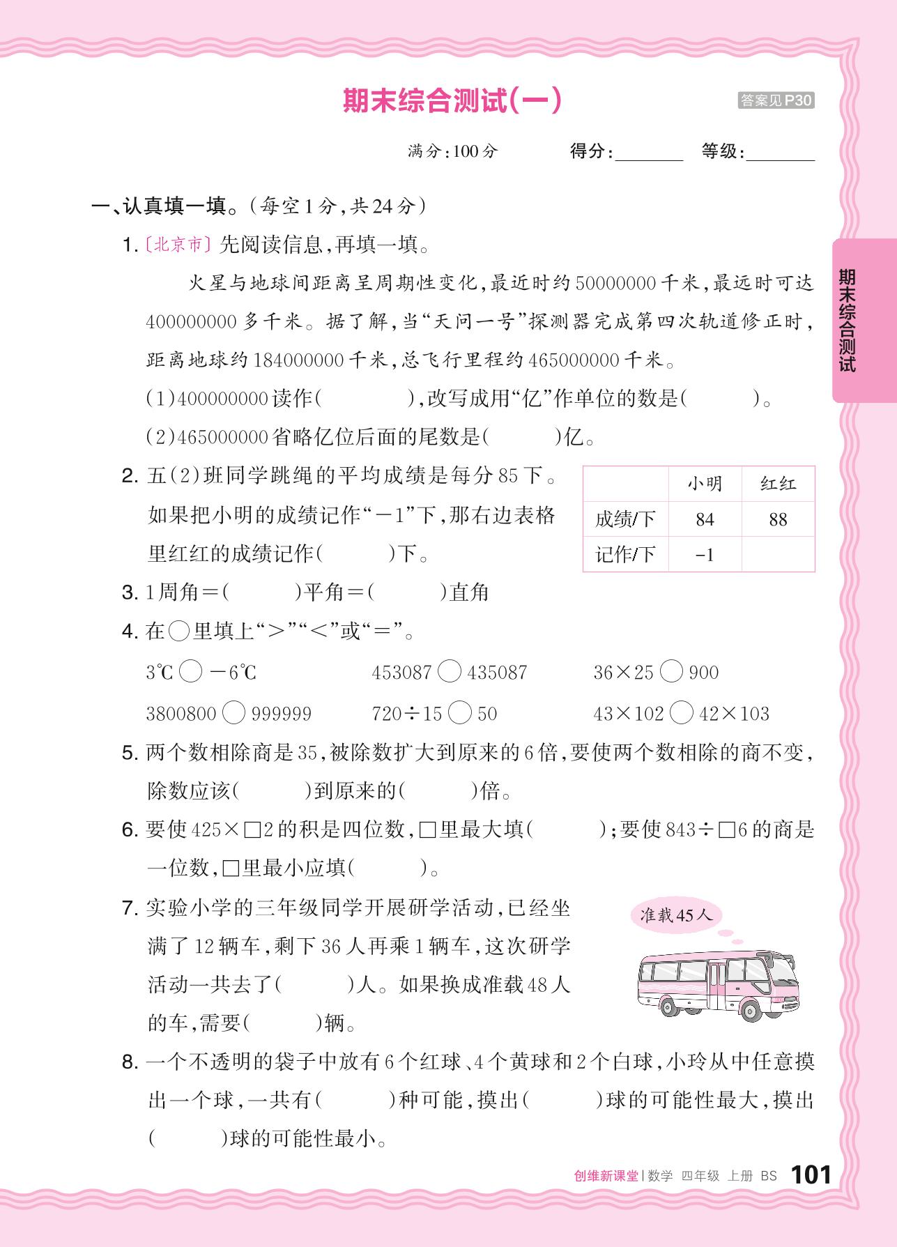 四年级数学北师版上册期末卷