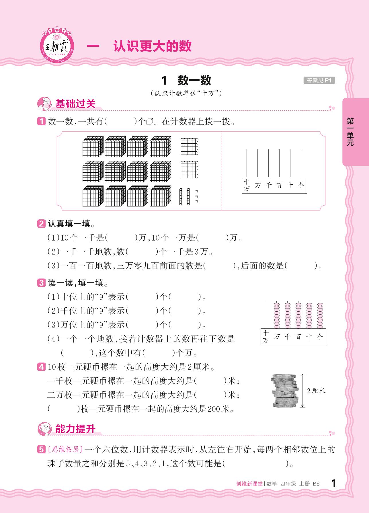 2024秋上册四年级数学北师版 第一单元 认识更大的数——1. 数一数
