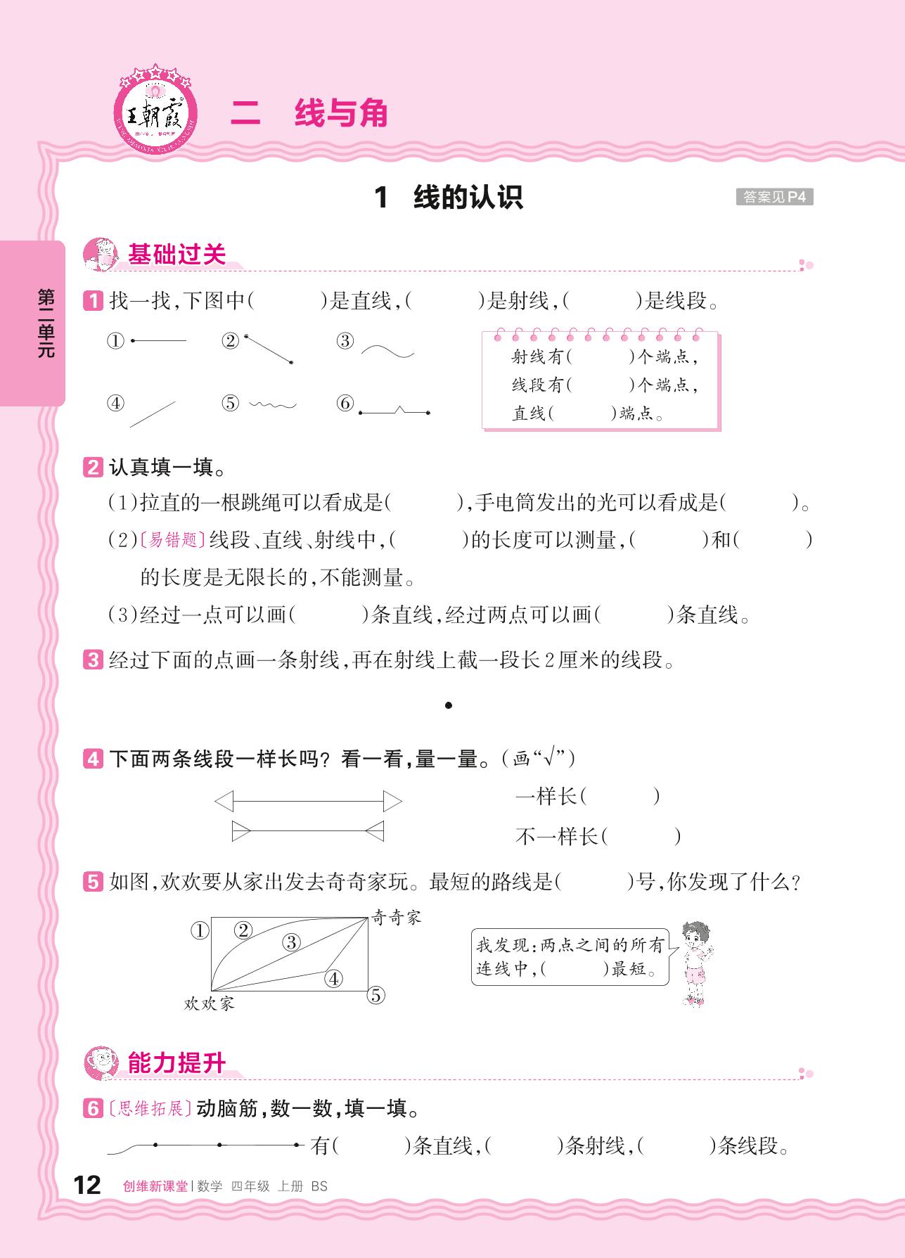 2024秋上册四年级数学北师版 第二单元 线与角——1. 线的认识