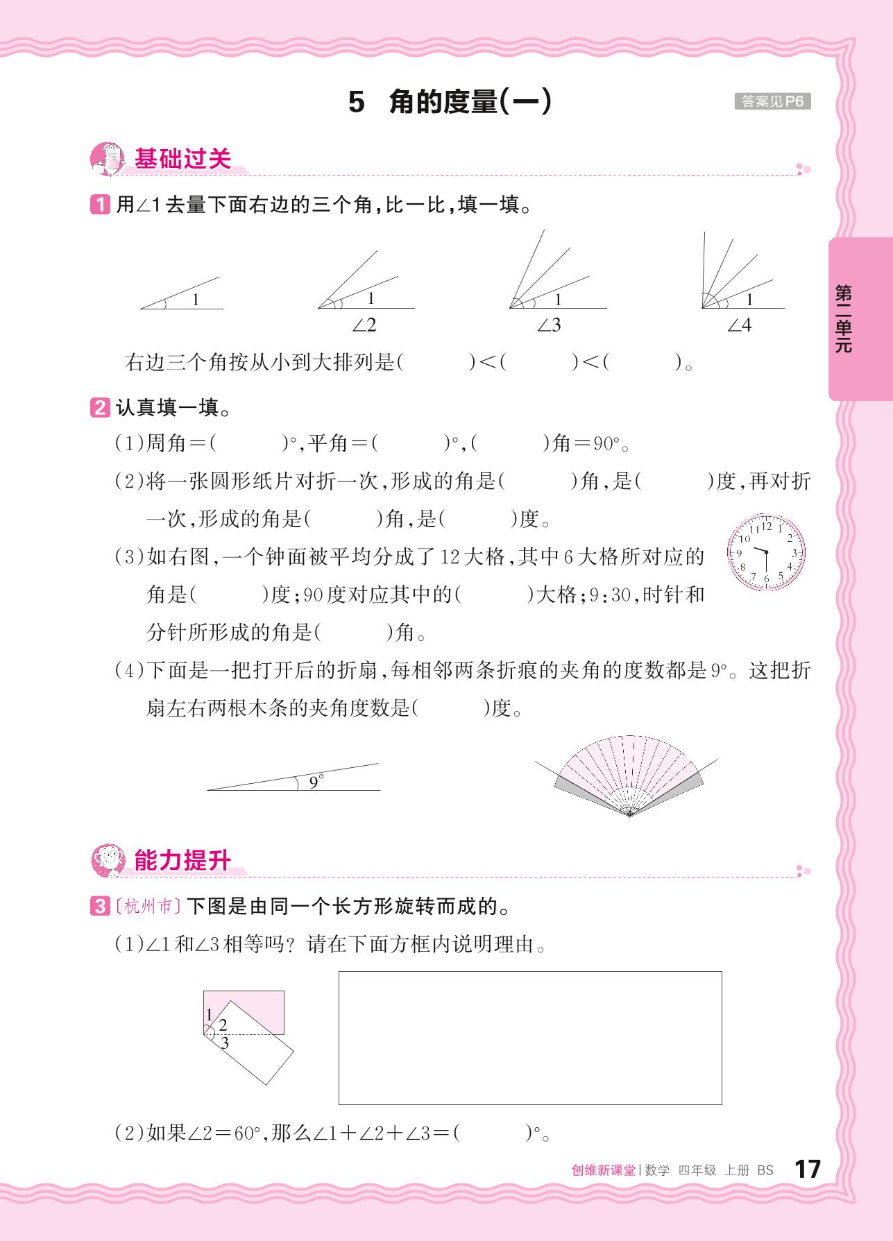 2024秋上册四年级数学北师版 第二单元 线与角——5. 角的度量(一)