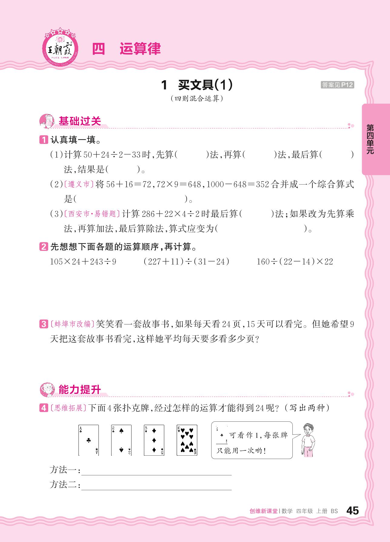 2024秋上册四年级数学北师版 第四单元 运算律——1. 买文具(1)