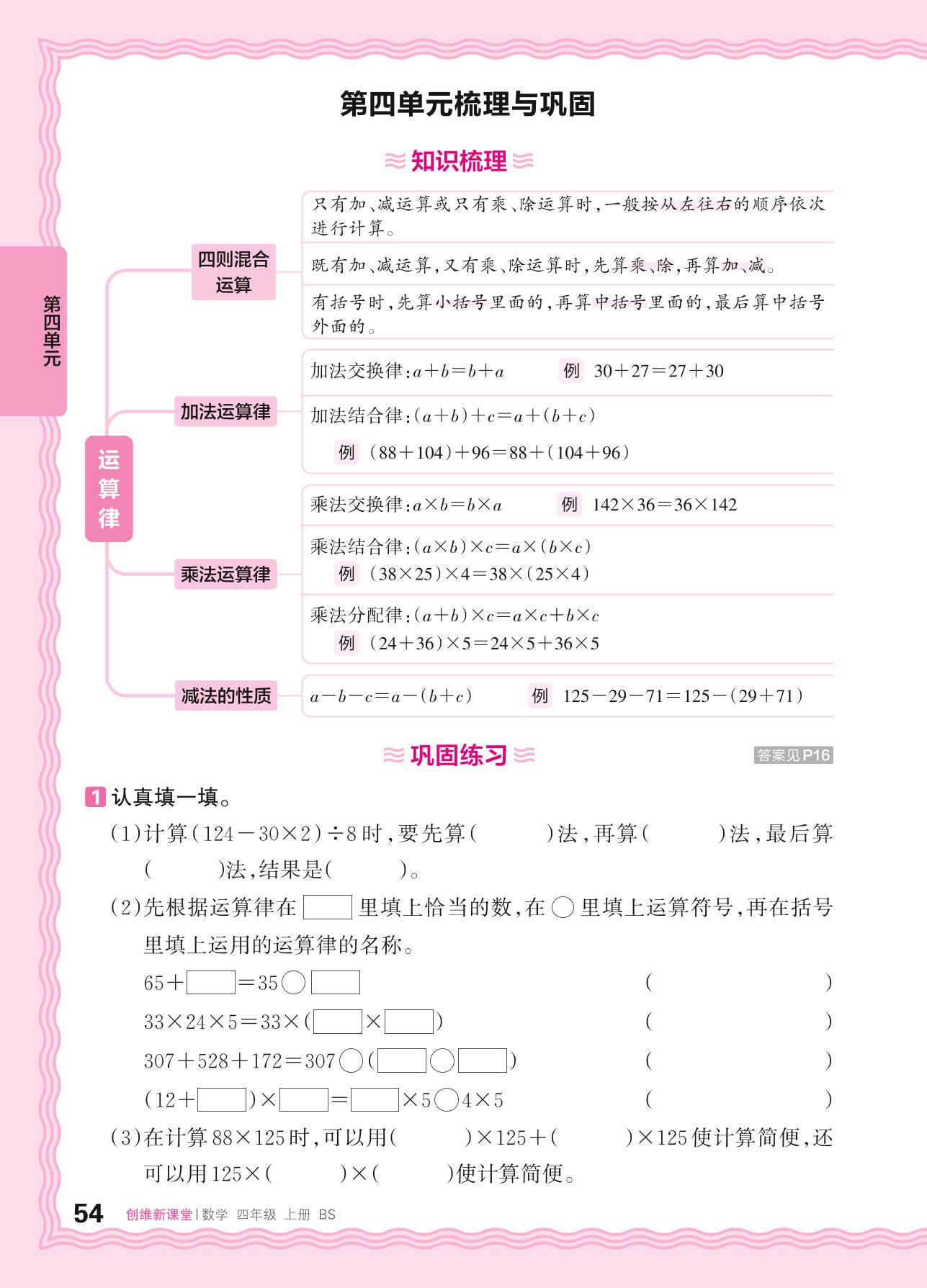 2024秋上册四年级数学北师版 第四单元梳理与巩固