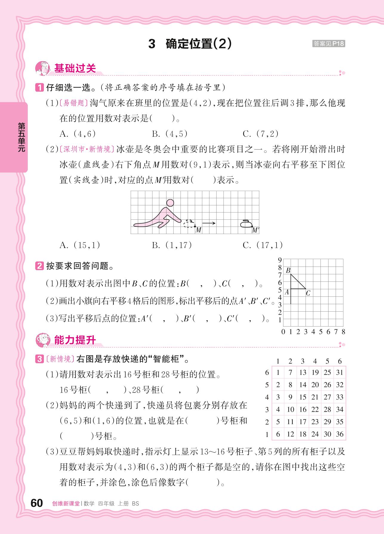 2024秋上册四年级数学北师版 第五单元 方向与位置——3. 确定位置(2)
