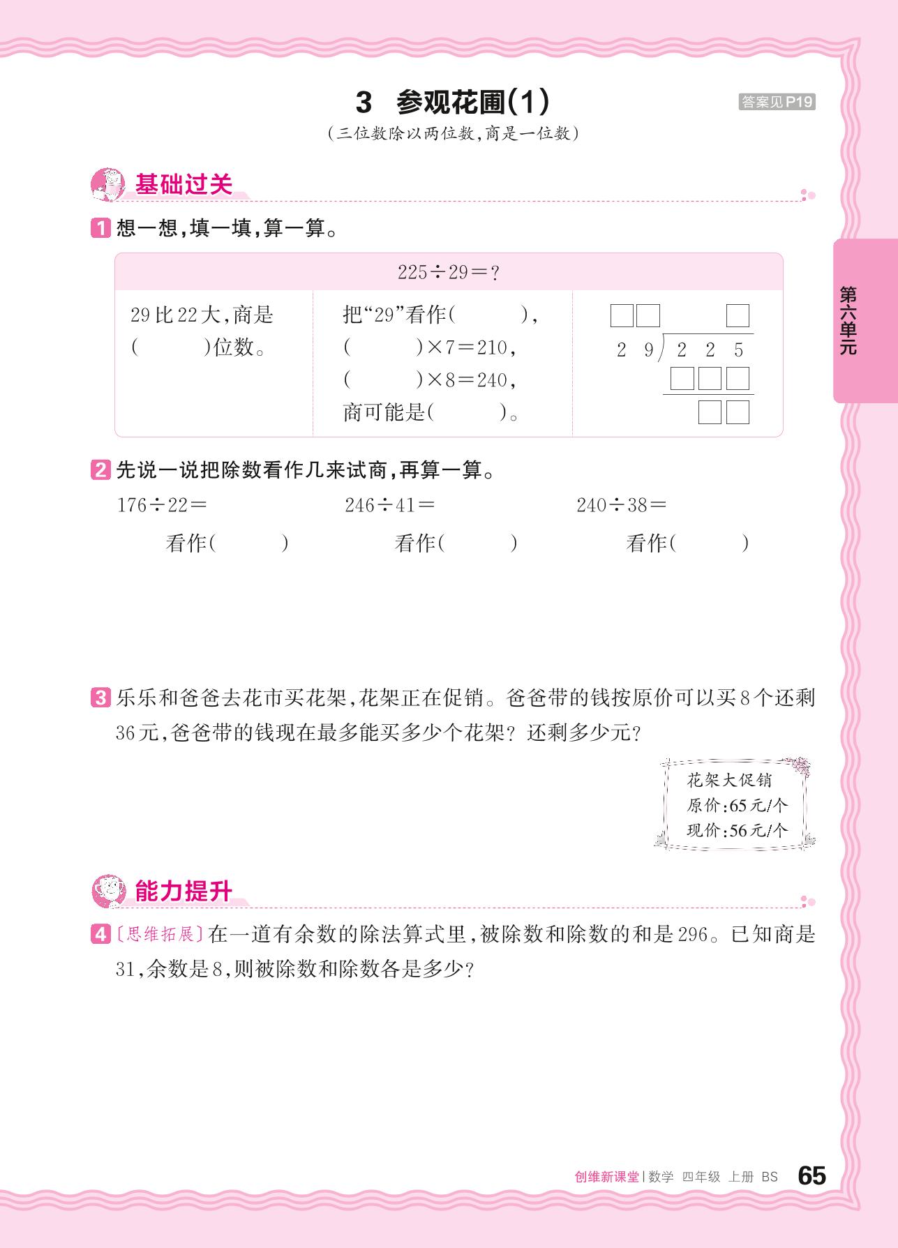 2024秋上册四年级数学北师版 第六单元 除法——3. 参观花圃(1)