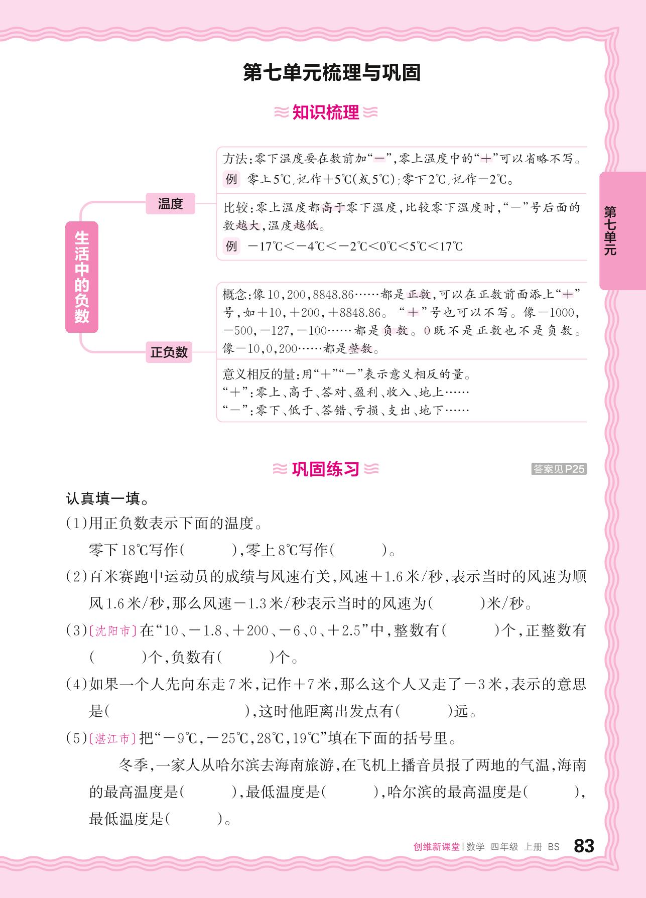 2024秋上册四年级数学北师版 第七单元梳理与巩固