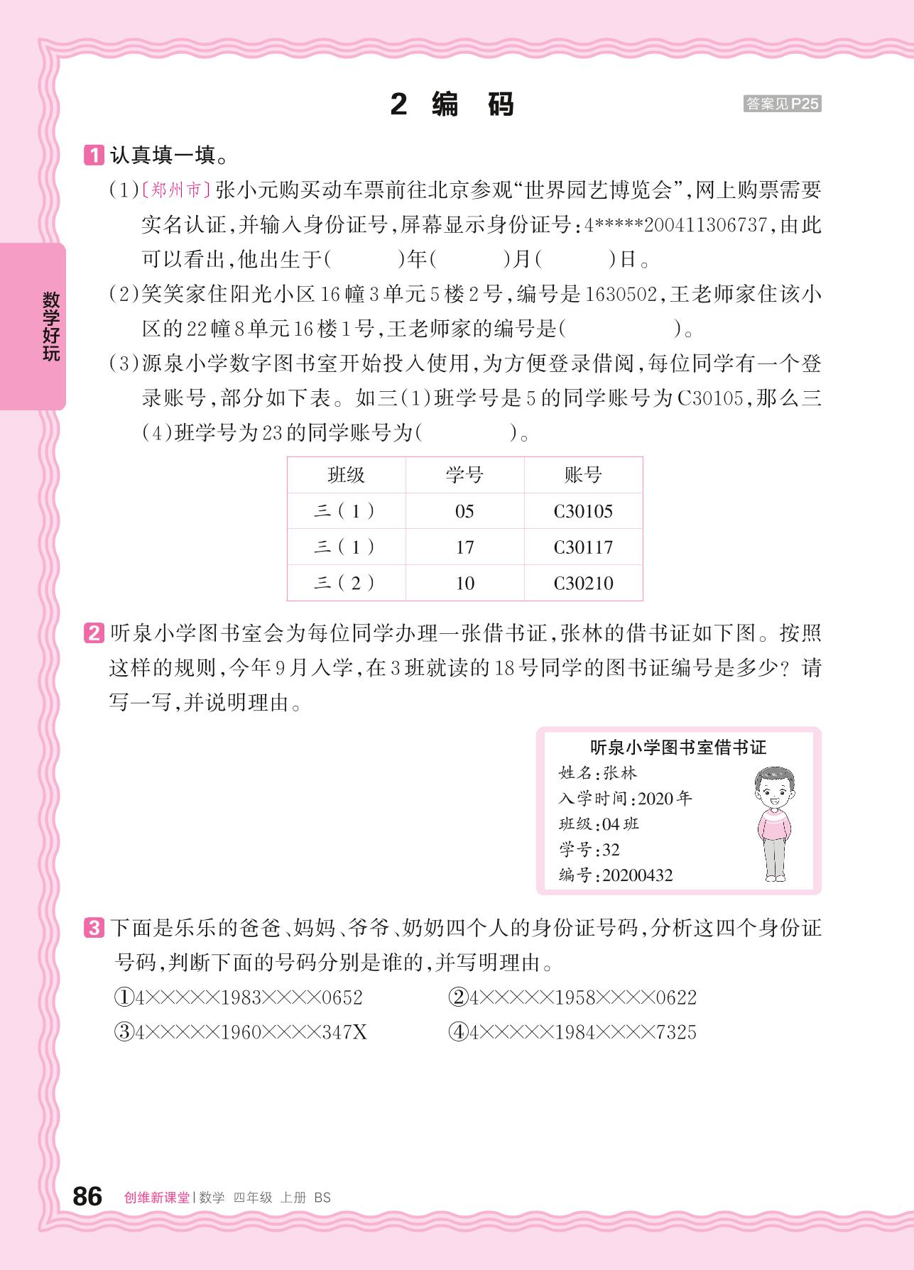2024秋上册四年级数学北师版 数学好玩——2. 编码