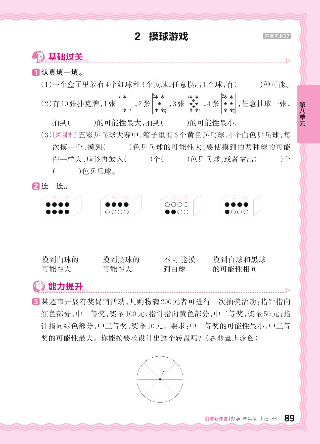 2024秋上册四年级数学北师版 第八单元 可能性——2. 摸球游戏