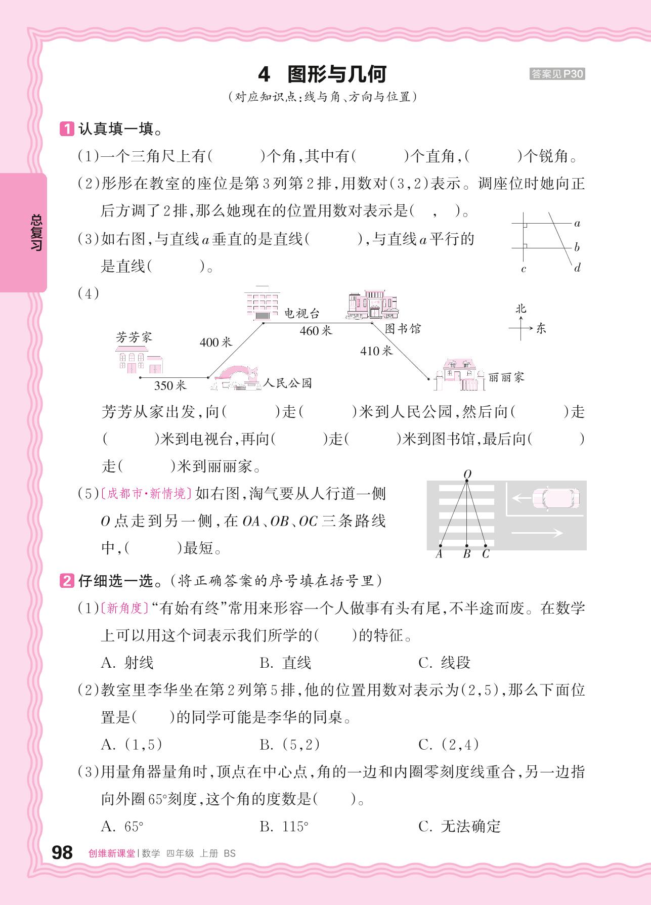 2024秋上册四年级数学北师版 总复习——4. 图形与几何