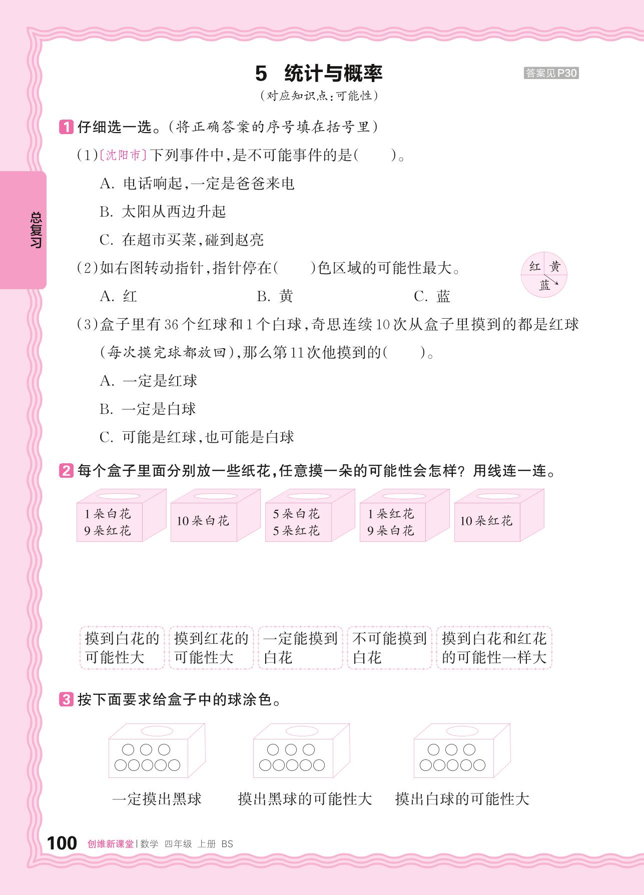 2024秋上册四年级数学北师版 总复习——5. 统计与概率