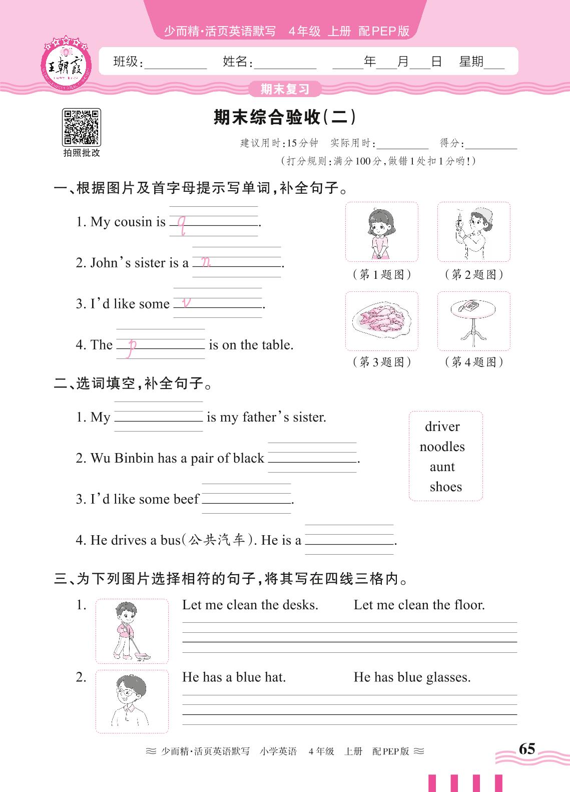 2024秋上册四年级英语人教PEP版(三起始) 期末综合验收(二)