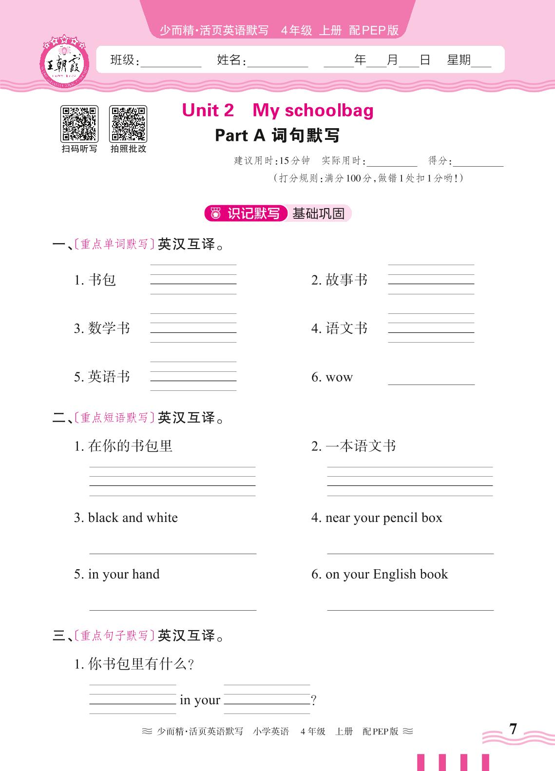 2024秋上册四年级英语人教PEP版(三起始) Unit 2—Part A 词句默写