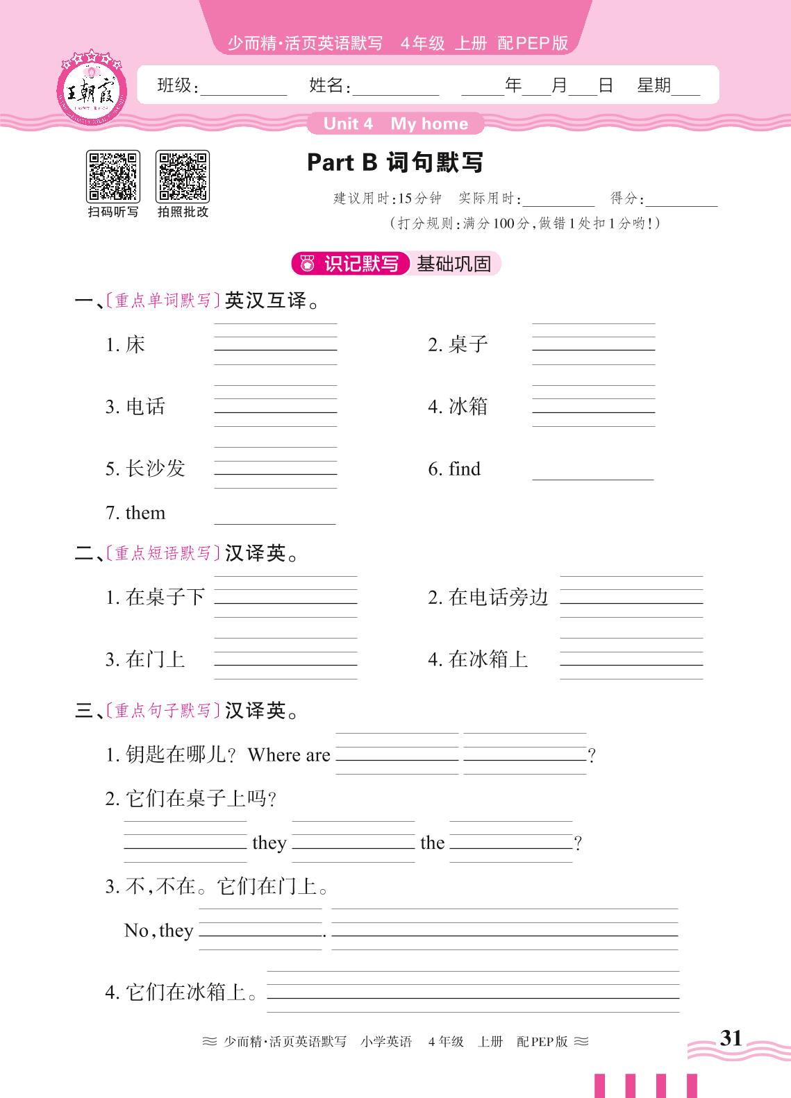 2024秋上册四年级英语人教PEP版(三起始) Unit 4—Part B 词句默写