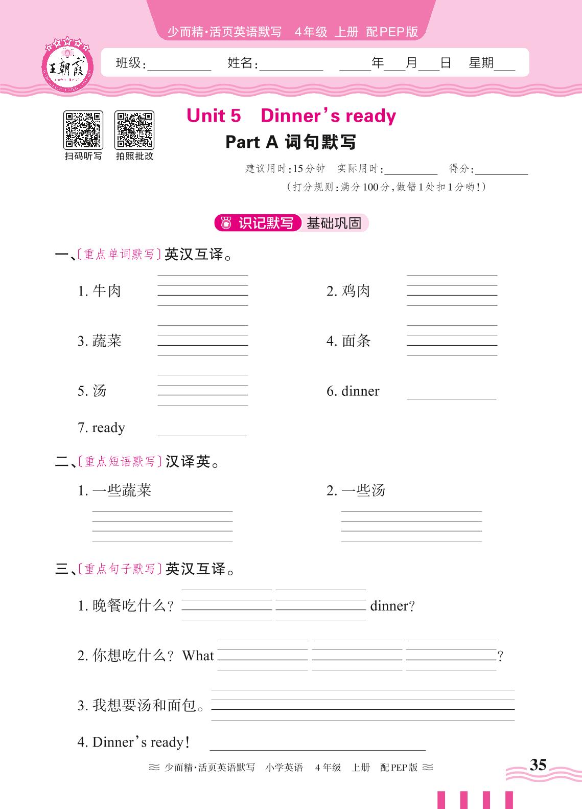 2024秋上册四年级英语人教PEP版(三起始) Unit 5—Part A 词句默写