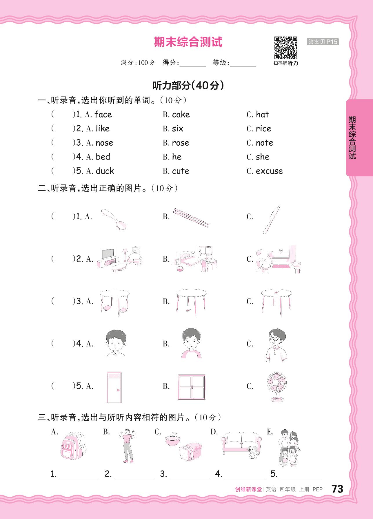 2024秋上册四年级英语人教PEP版(三起始) 期末综合测试