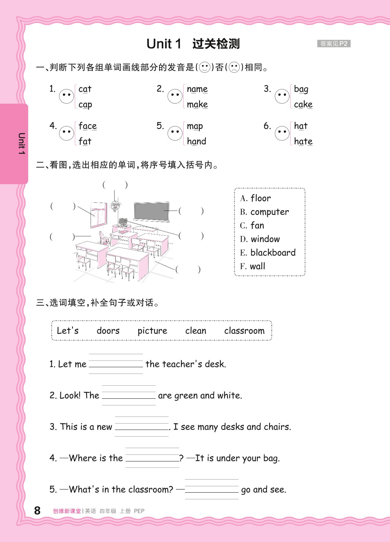 2024秋上册四年级英语人教PEP版(三起始) Unit 1 过关检测