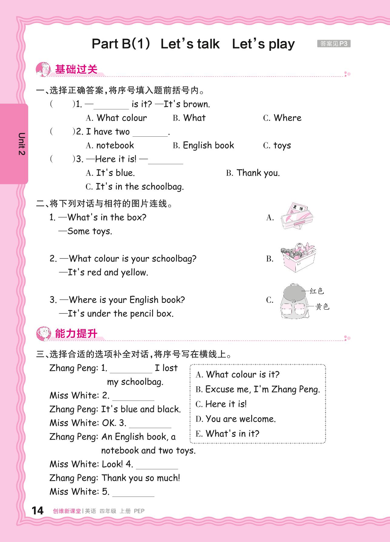 2024秋上册四年级英语人教PEP版(三起始) Unit 2—Part B(1) Let's talk Let's play