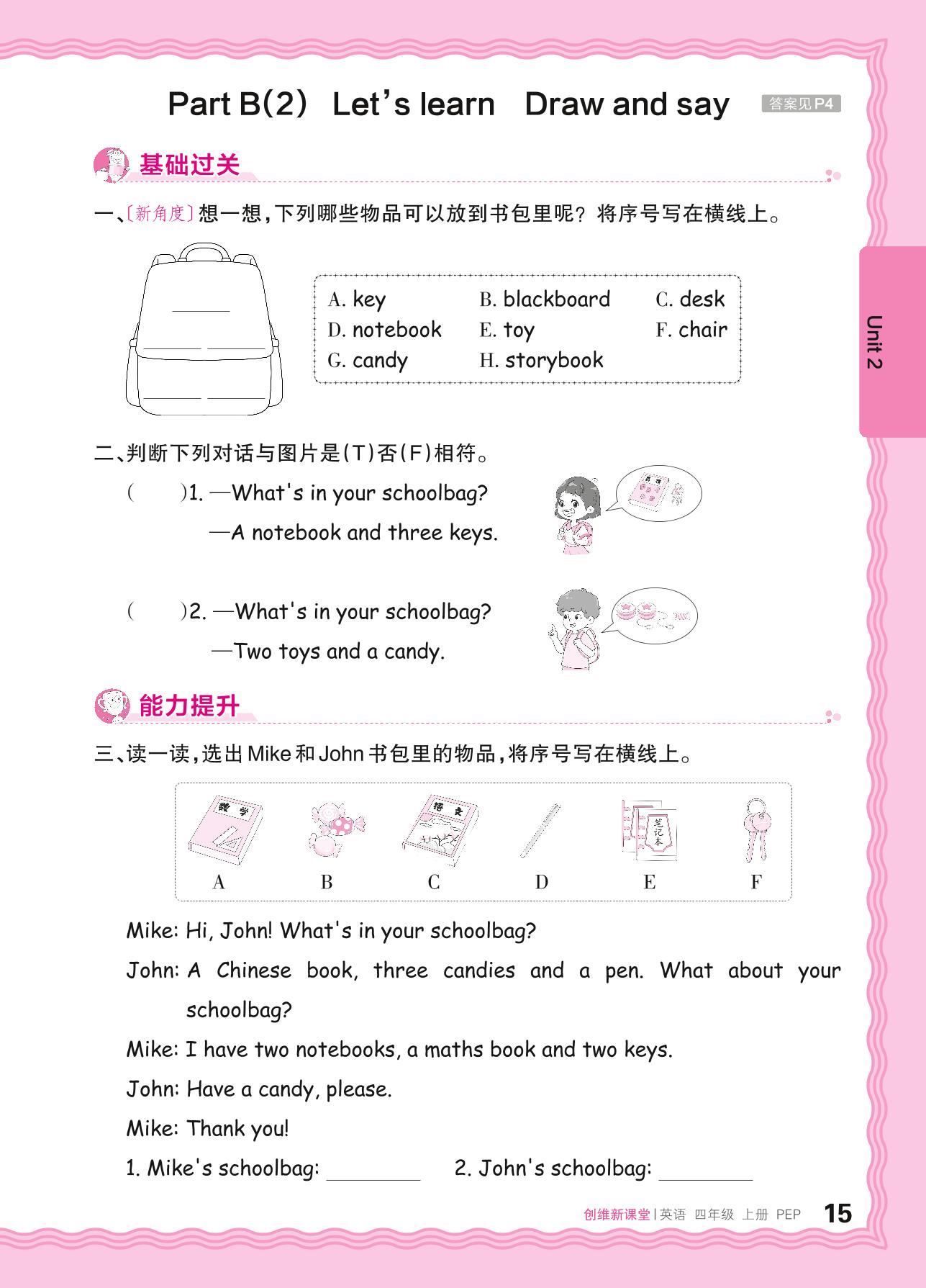 2024秋上册四年级英语人教PEP版(三起始) Unit 2—Part B(2) Let's learn Draw and say