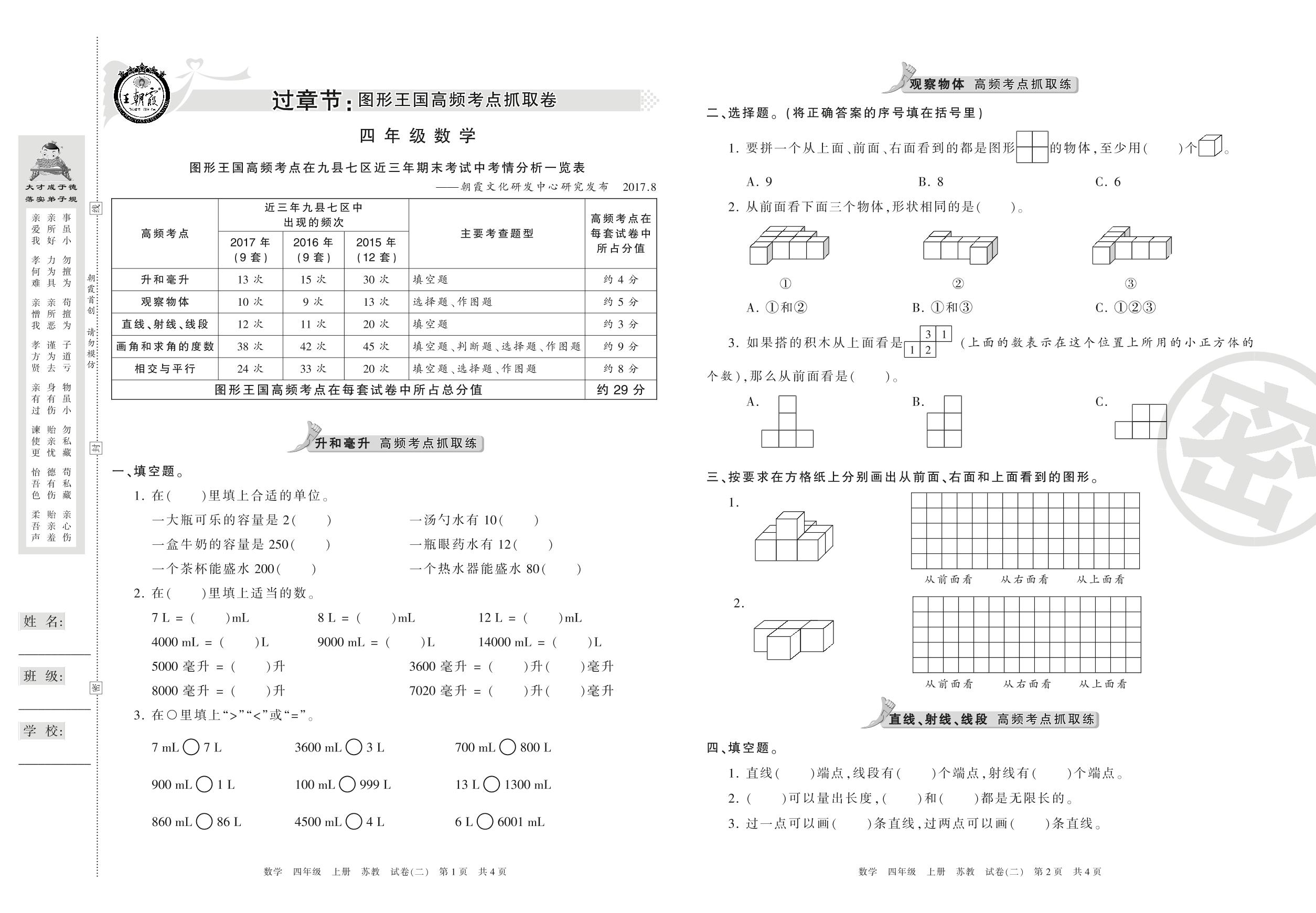 王朝霞期末过章节四年级上册数学(苏教版)【2】