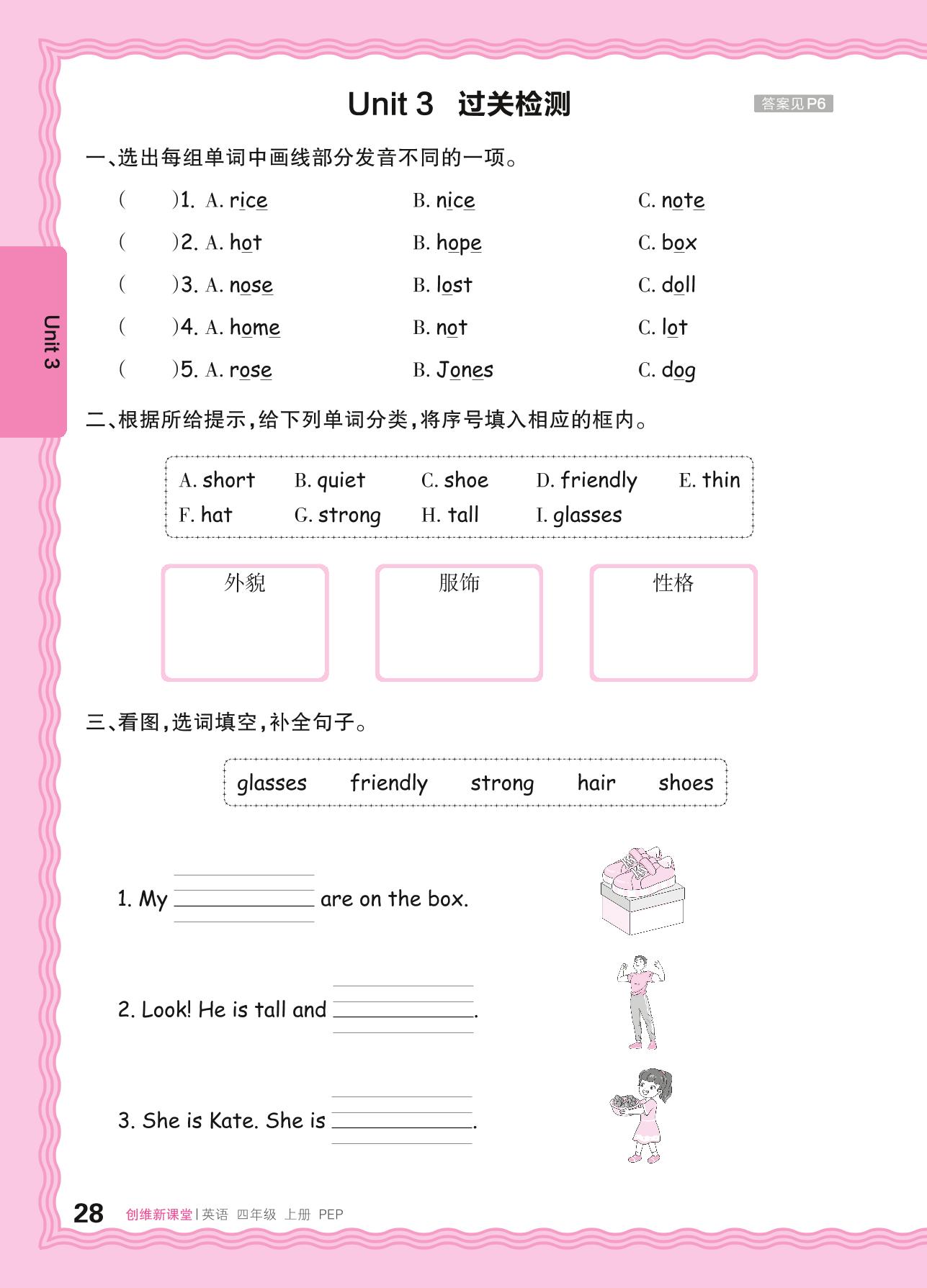 2024秋上册四年级英语人教PEP版(三起始) Unit 3 过关检测