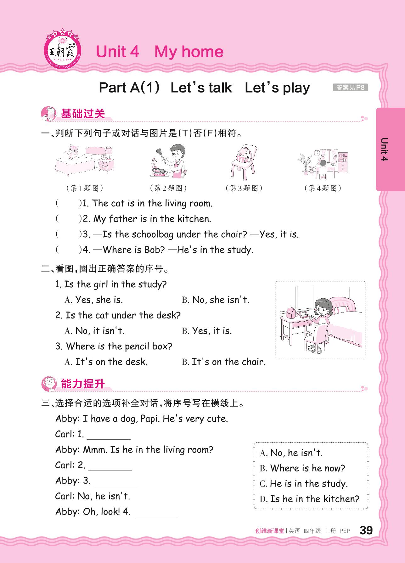 2024秋上册四年级英语人教PEP版(三起始) Unit 4—Part A(1) Let's talk Let's play