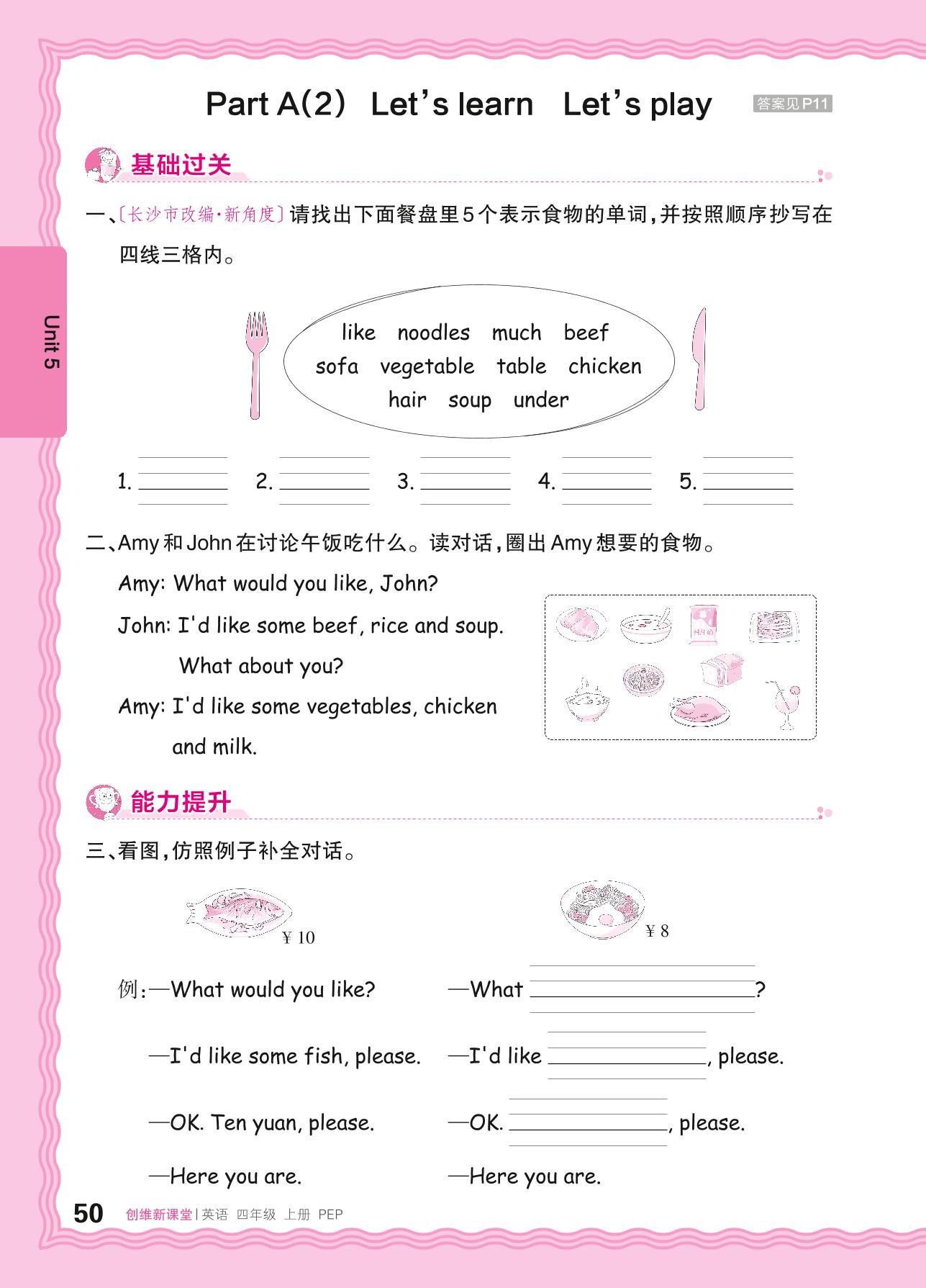2024秋上册四年级英语人教PEP版(三起始) Unit 5—Part A(2) Let's learn Let's play