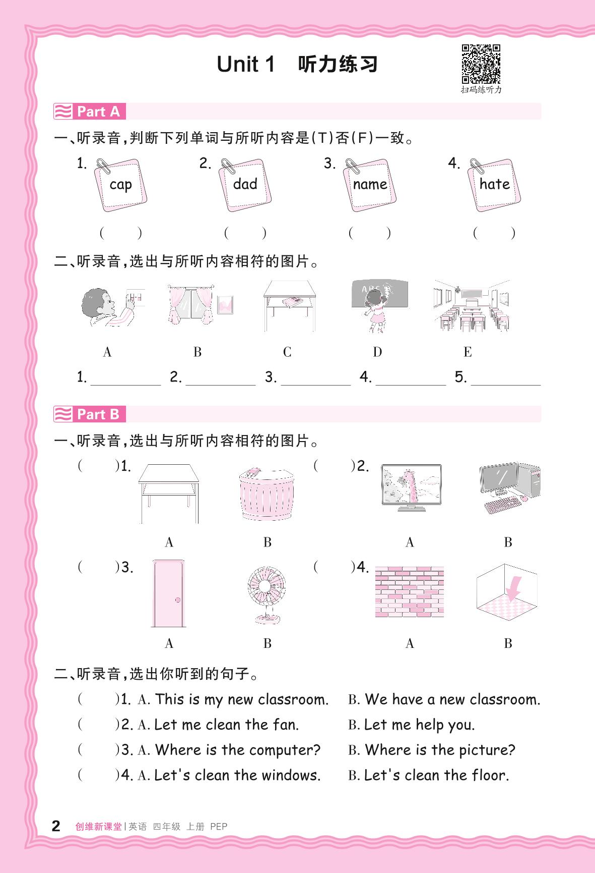 2024秋上册四年级英语人教PEP版(三起始) Unit 1 听力练习