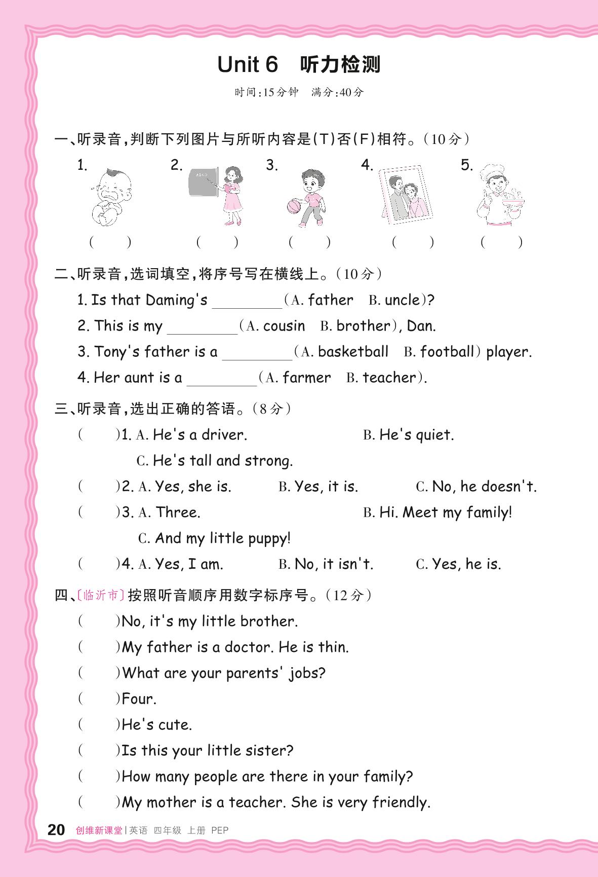 2024秋上册四年级英语人教PEP版(三起始) Unit 6 听力检测