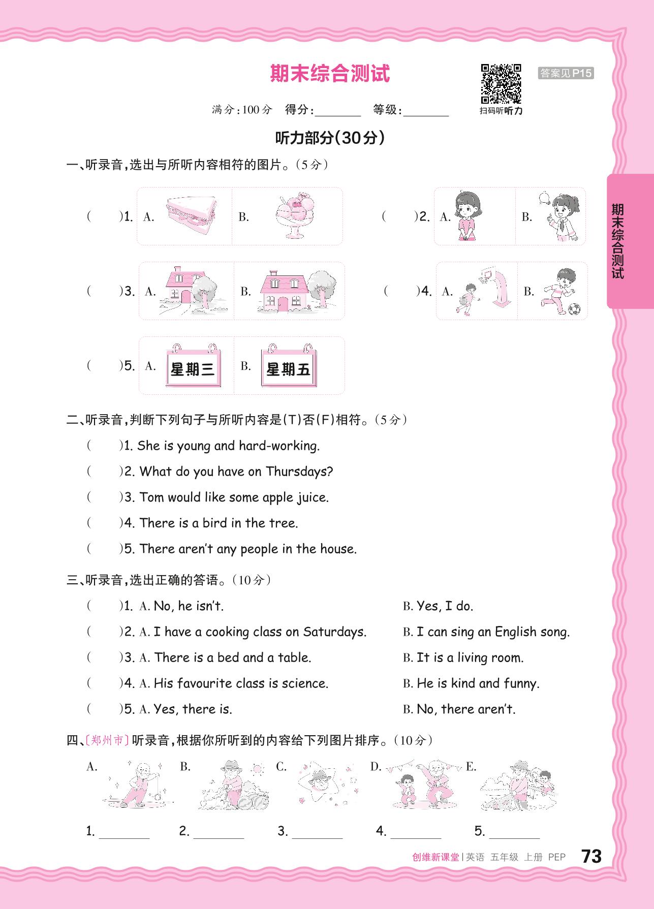 2024秋上册五年级英语人教PEP版(三起始) 期末综合测试