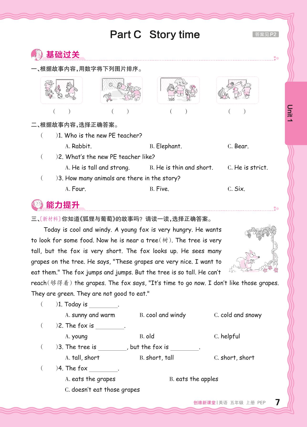 2024秋上册五年级英语人教PEP版(三起始) Unit 1—Part C Story time