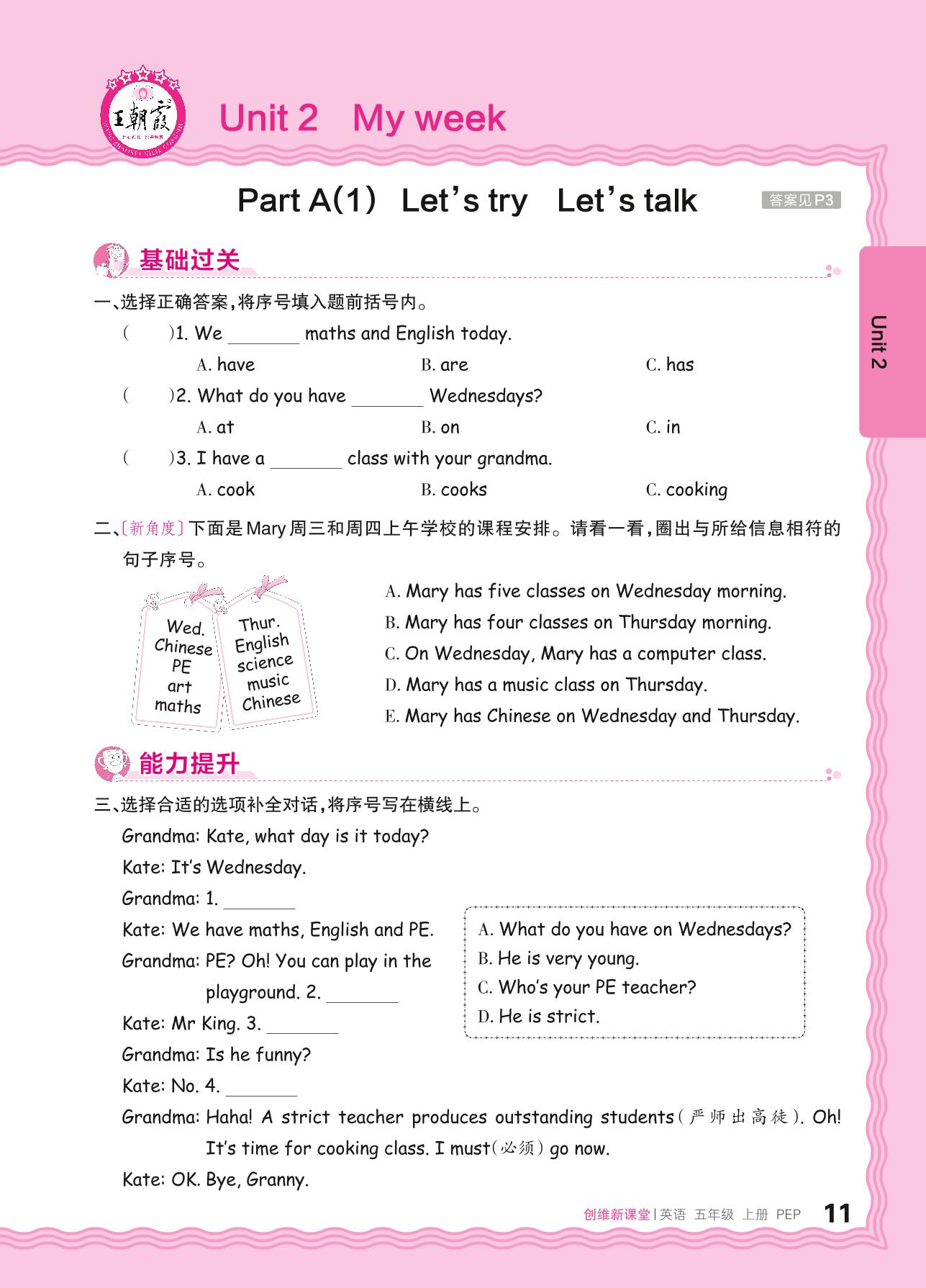 2024秋上册五年级英语人教PEP版(三起始) Unit 2—Part A(1) Let's try Let's talk