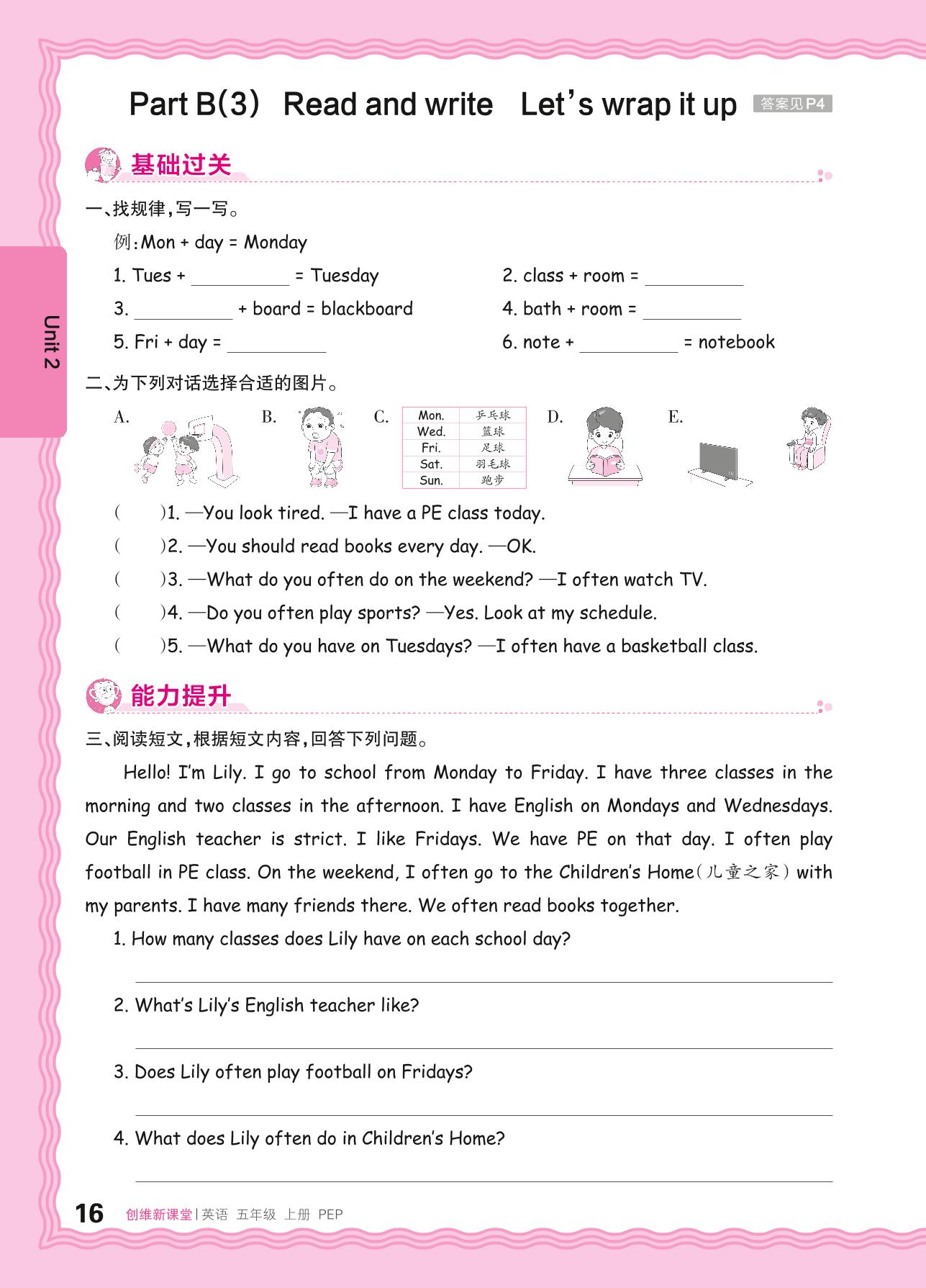 2024秋上册五年级英语人教PEP版(三起始) Unit 2—Part B(3) Read and write Let's wrap it up