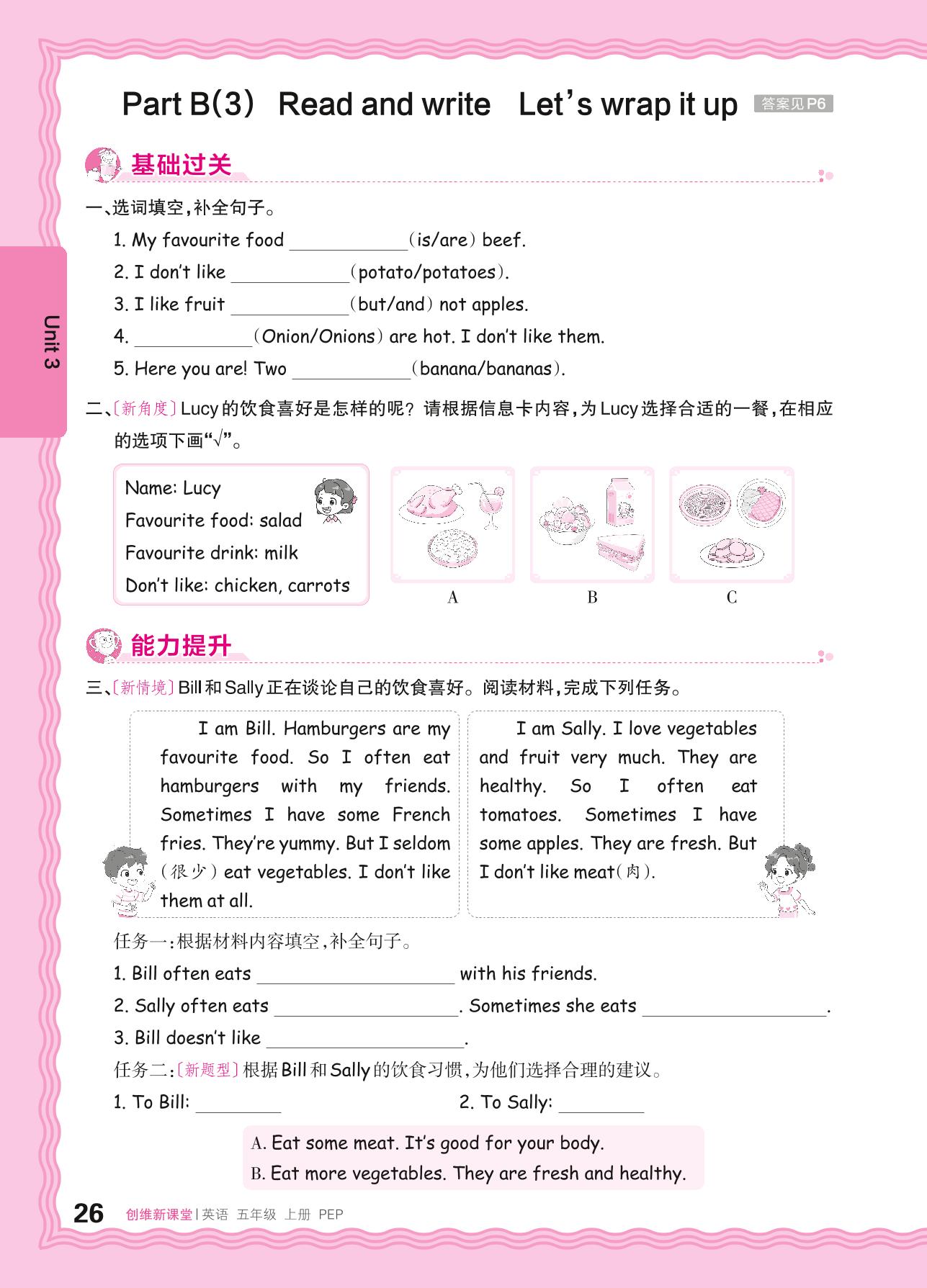2024秋上册五年级英语人教PEP版(三起始) Unit 3—Part B(3) Read and write Let's wrap it up