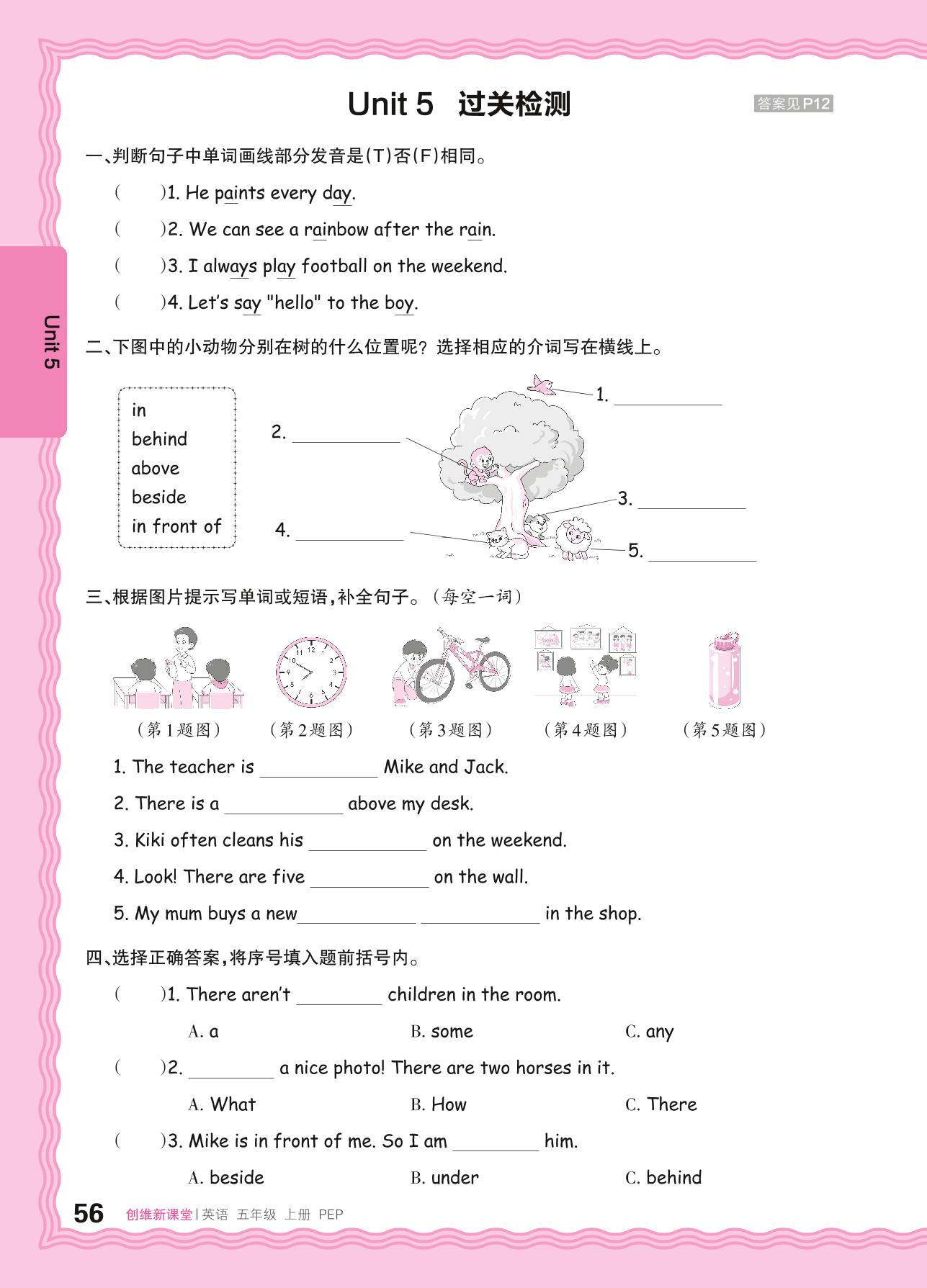 2024秋上册五年级英语人教PEP版(三起始) Unit 5 过关检测