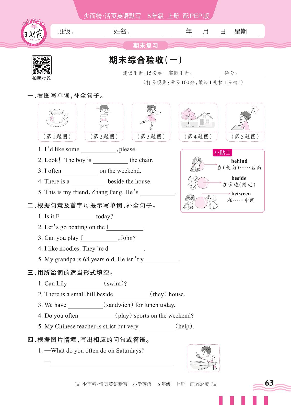 2024秋上册五年级英语人教PEP版(三起始) 期末综合验收(一)