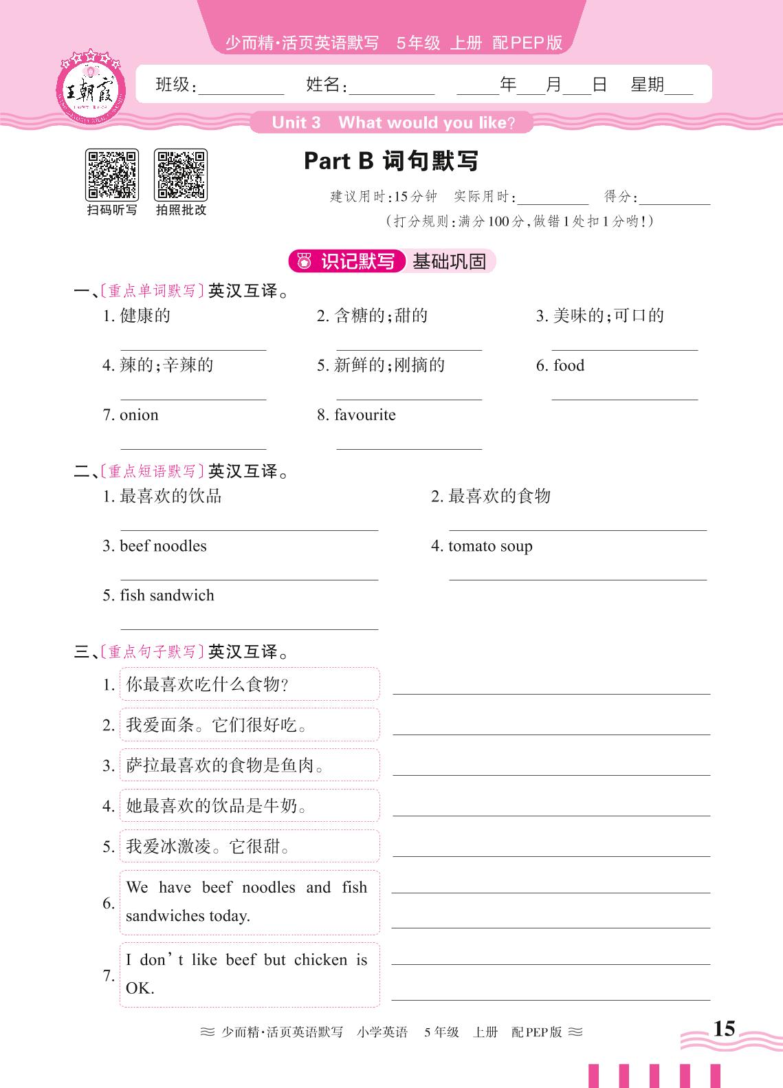 2024秋上册五年级英语人教PEP版(三起始) Unit 3—Part B 词句默写