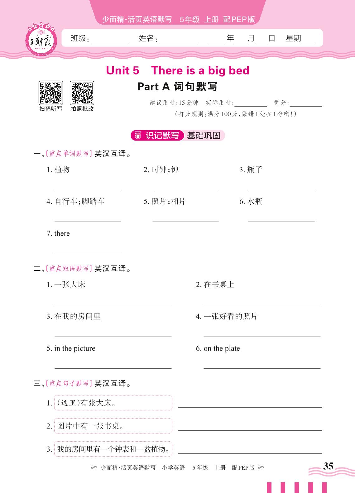 2024秋上册五年级英语人教PEP版(三起始) Unit 5—Part A 词句默写