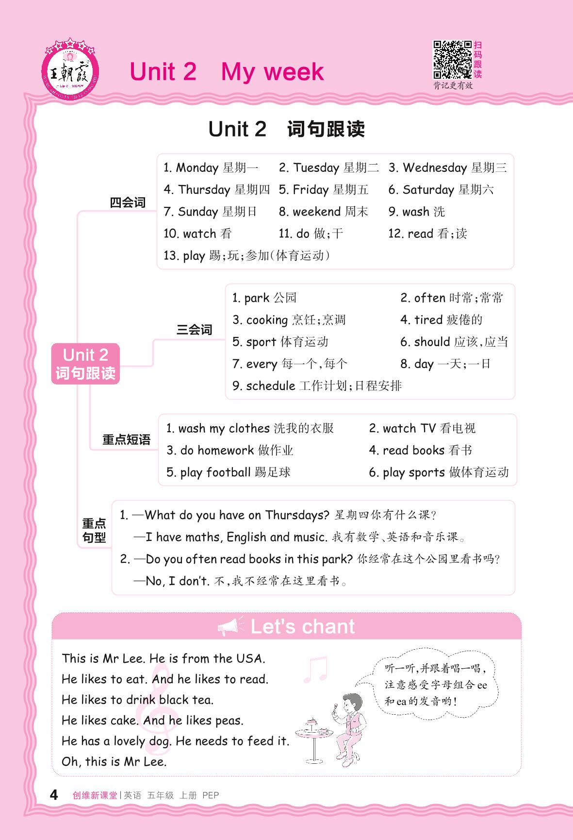 2024秋上册五年级英语人教PEP版(三起始) Unit 2 词句跟读