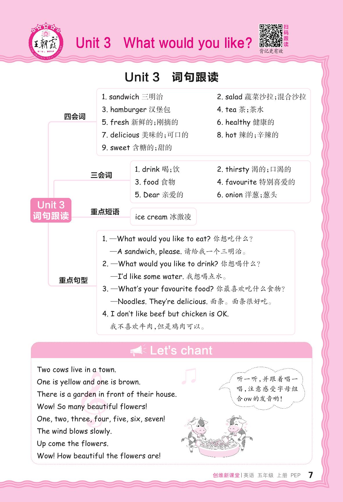2024秋上册五年级英语人教PEP版(三起始) Unit 3 词句跟读