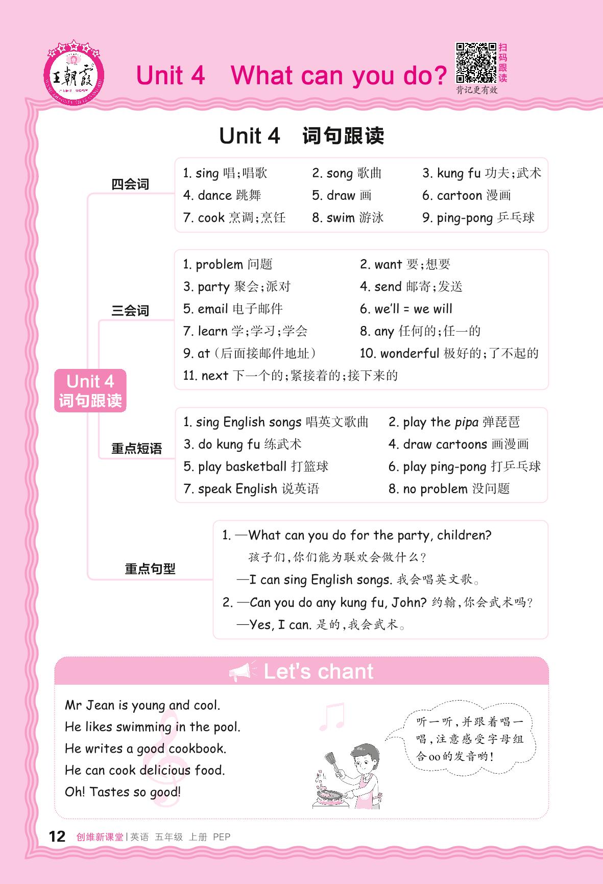2024秋上册五年级英语人教PEP版(三起始) Unit 4 词句跟读