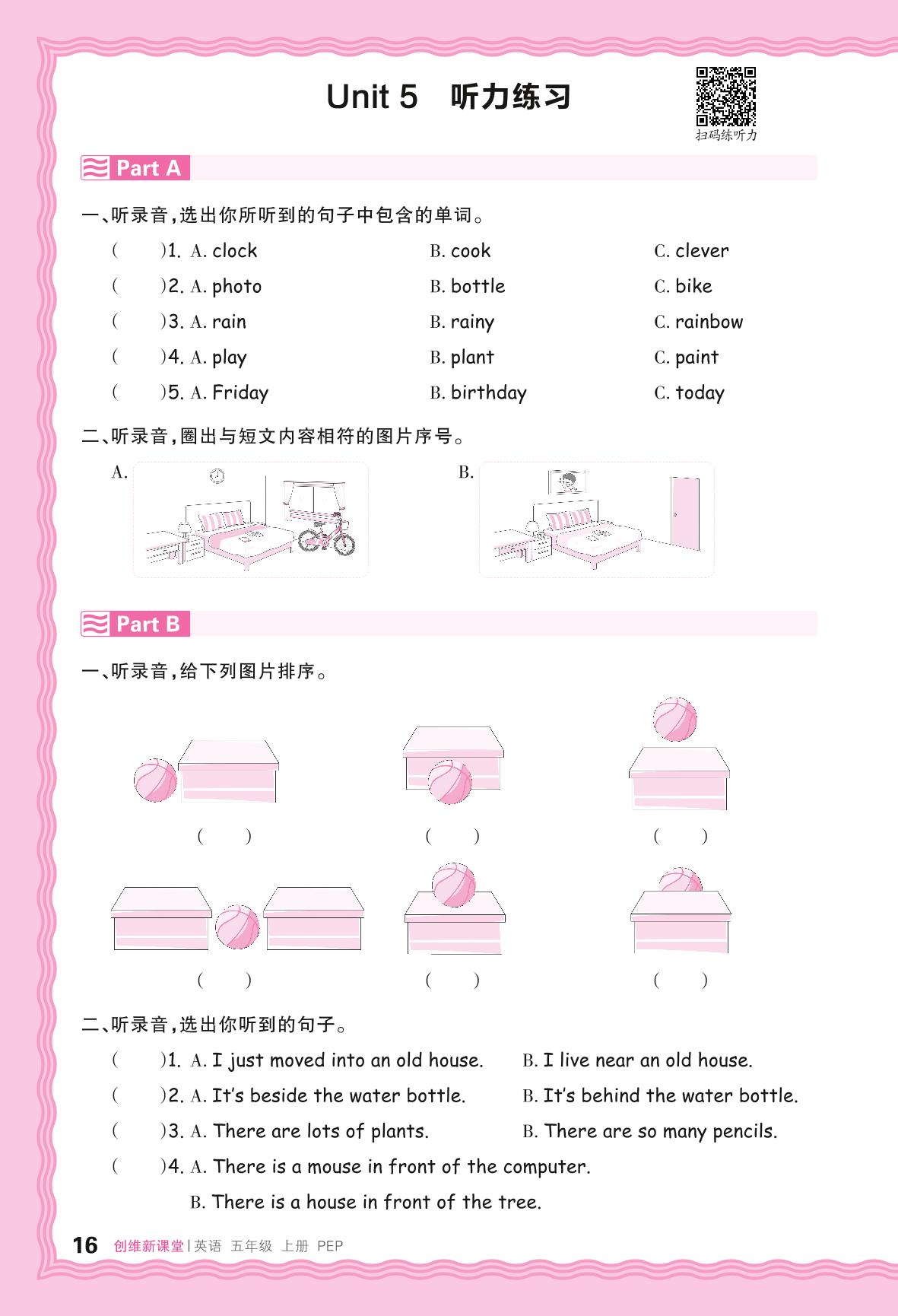 2024秋上册五年级英语人教PEP版(三起始) Unit 5 听力练习